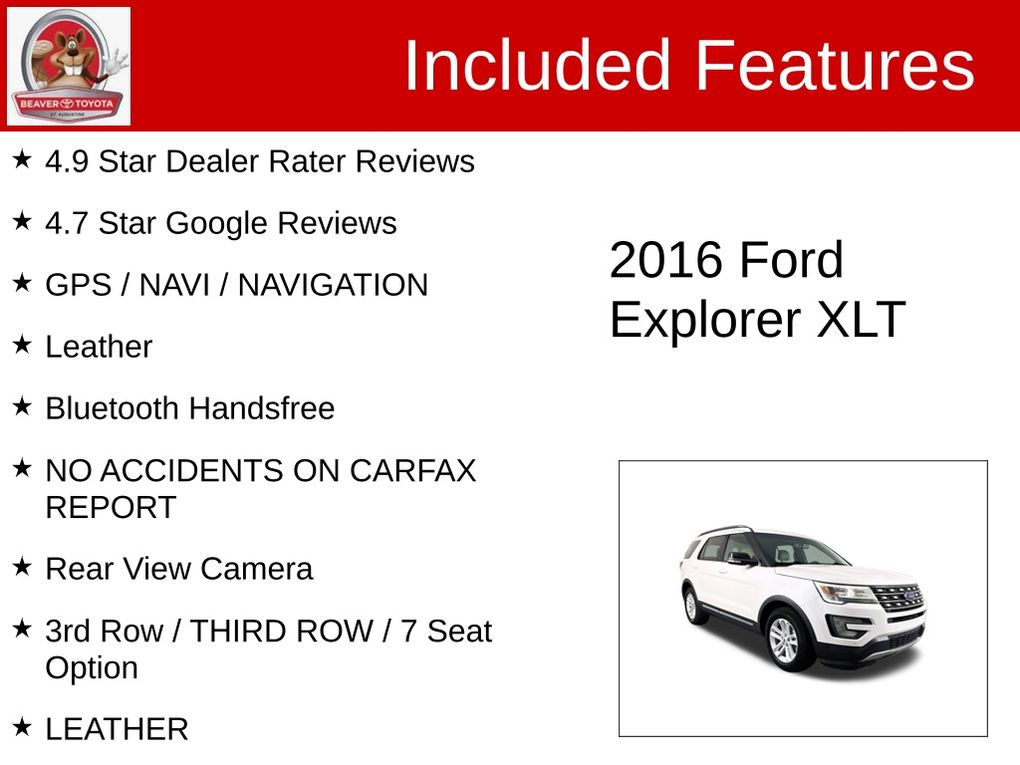 Discover the perfect blend of style, capability, and technology in this 2016 Ford Explorer XLT. This versatile SUV is ready to elevate your driving experience with its impressive list of features and exceptional condition.