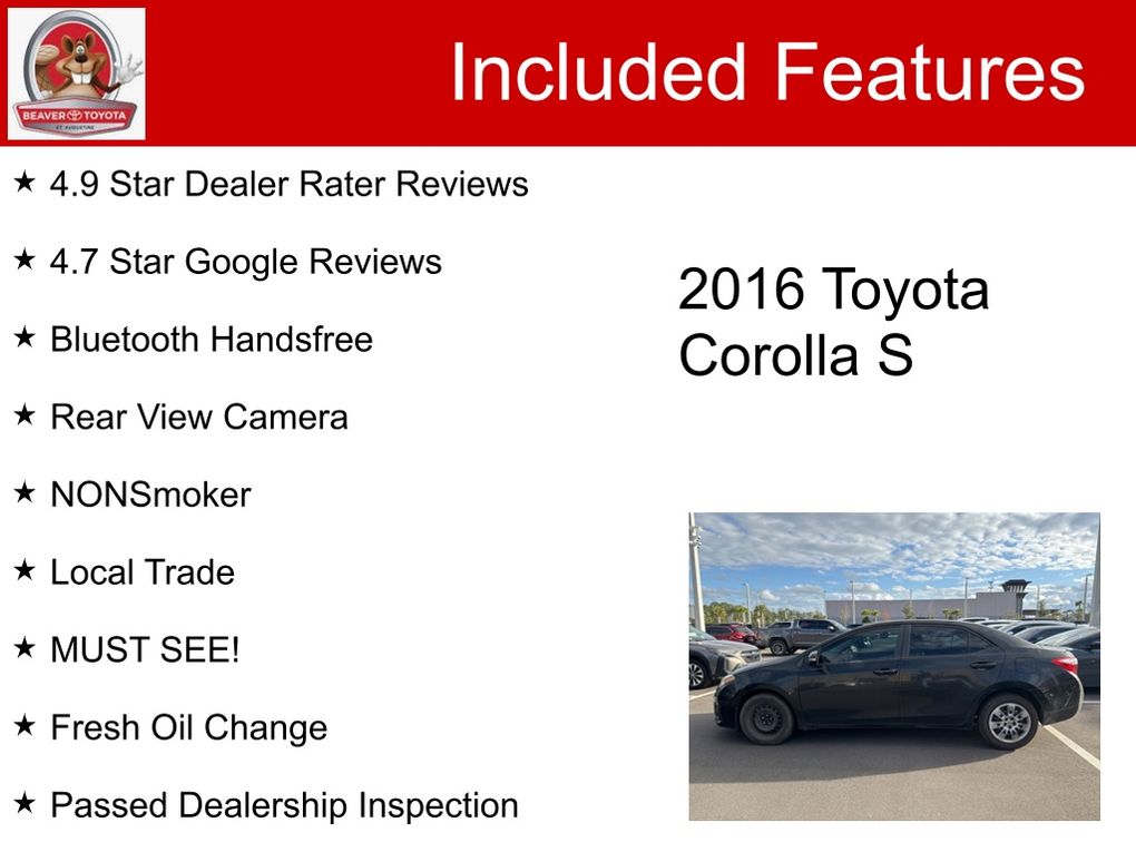 Black Sand Pearl 2016 Toyota Corolla S FWD 1.8L I4 DOHC Dual VVT-i