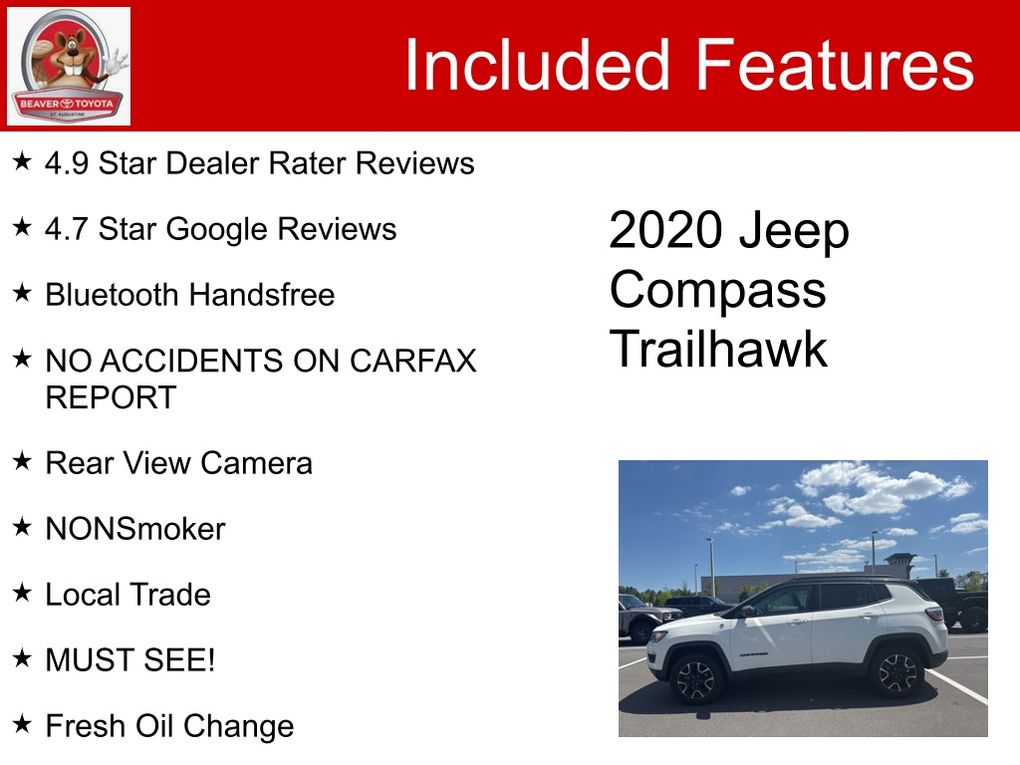 Discover the perfect blend of power, capability, and style with the 2020 Jeep Compass Trailhawk. This impressive SUV is ready to take on any adventure, whether you're navigating the city streets or conquering the great outdoors.