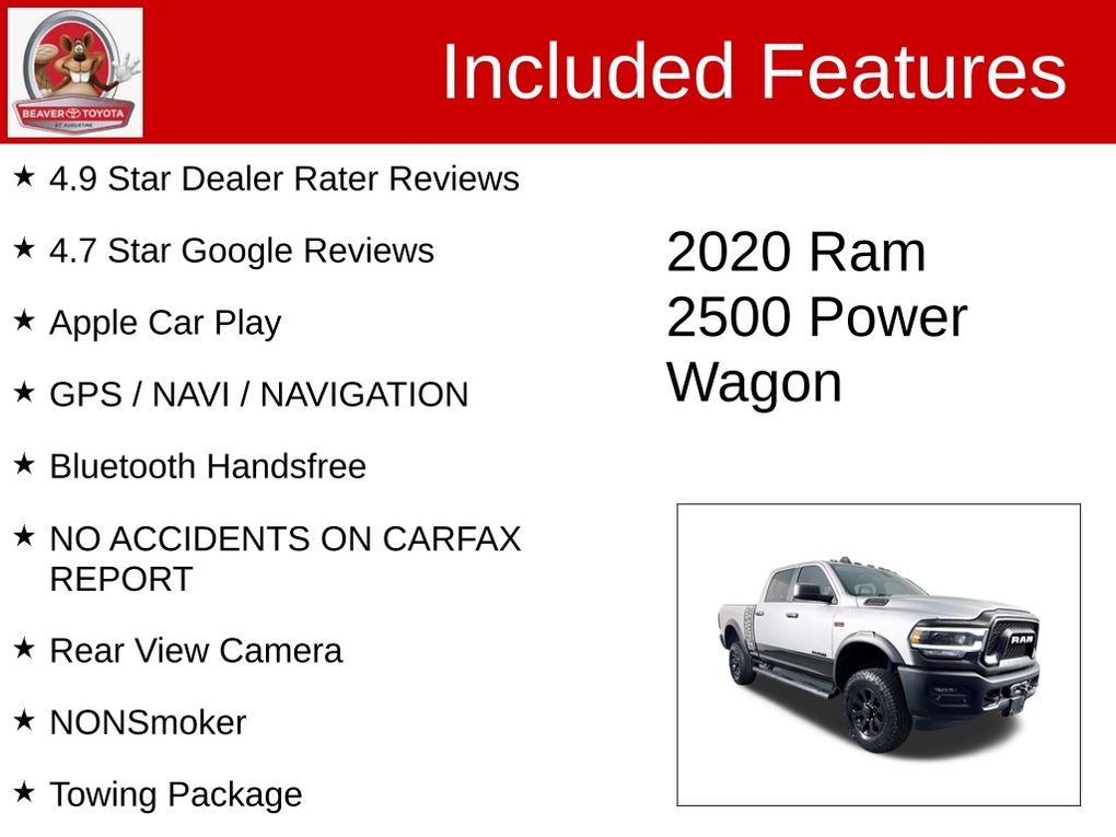 Discover the perfect blend of capability, technology, and style in this 2020 Ram 2500 Power Wagon. Experience the ultimate in off-road prowess and enjoy the peace of mind that comes with our certified pre-owned program. Visit our showroom today and let us demonstrate how this exceptional vehicle can elevate your driving experience.