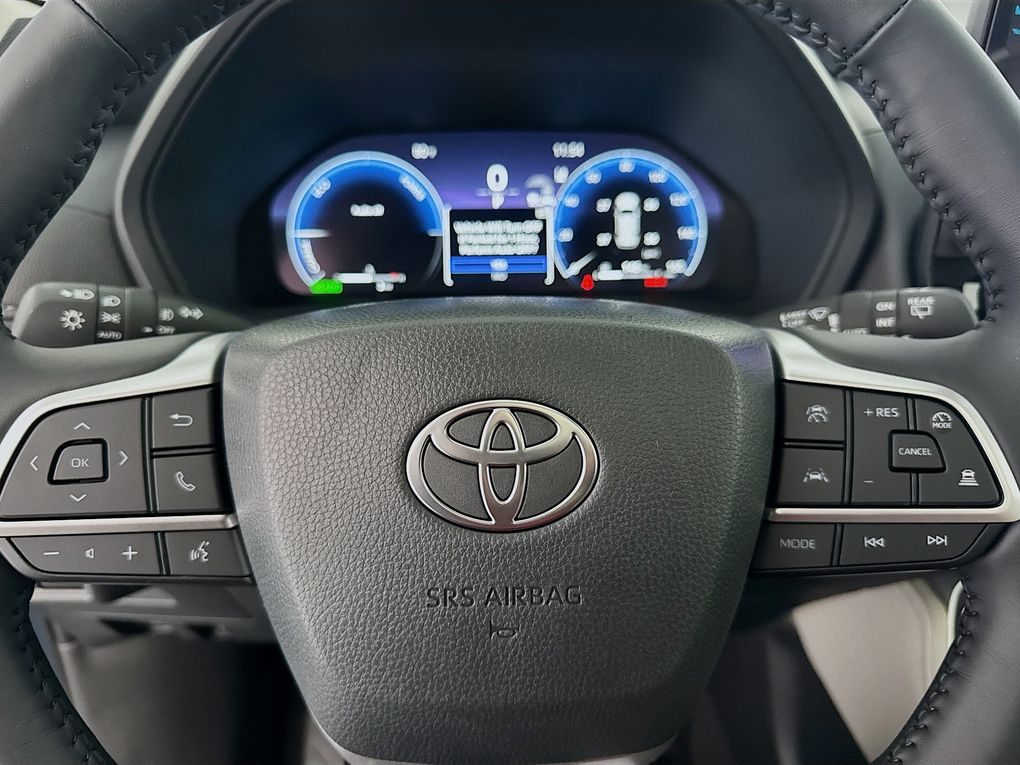 2.5L 4-Cylinder 16V, 11 Speakers, 3rd row seats: split-bench, 4-Wheel Disc Brakes, ABS brakes, Air Conditioning, Alloy wheels, AM/FM radio: SiriusXM, Apple CarPlay/Android Auto, Auto High-beam Headlights, Auto-dimming Rear-View mirror, Automatic temperature control, Brake assist, Bumpers: body-color, Delay-off headlights, Driver door bin, Driver vanity mirror, Dual front impact airbags, Dual front side impact airbags, Electronic Stability Control, Emergency communication system: Safety Connect (up to 10-year trial subscription), Exterior Parking Camera Rear, Four wheel independent suspension, Front anti-roll bar, Front Bucket Seats, Front Center Armrest, Front dual zone A/C, Front fog lights, Front reading lights, Fully automatic headlights, Garage door transmitter: HomeLink, Heated and Ventilated Front Seats, Heated door mirrors, Heated front seats, Heated rear seats, Heated steering wheel, Illuminated entry, Knee airbag, Leather Seat Trim, Leather Shift Knob, Leather steering wheel, Low tire pressure warning, Memory seat, Navigation system: Drive Connect Cloud Navigation (1-year trial subscription), Occupant sensing airbag, Outside temperature display, Overhead airbag, Overhead console, Panic alarm, Passenger door bin, Passenger vanity mirror, Power door mirrors, Power driver seat, Power Liftgate, Power passenger seat, Power steering, Power windows, Radio: 12.3" Toyota Audio Multimedia with JBL Audio, Rain sensing wipers, Rear air conditioning, Rear anti-roll bar, Rear reading lights, Rear window defroster, Rear window wiper, Reclining 3rd row seat, Remote keyless entry, Security system, Speed control, Speed-sensing steering, Split folding rear seat, Spoiler, Steering wheel mounted audio controls, Telescoping steering wheel, Tilt steering wheel, Traction control, Trip computer, Turn signal indicator mirrors, Variably intermittent wipers, Ventilated front seats, and Wheels: 20" Silver Multi-Spoke Aluminum.
