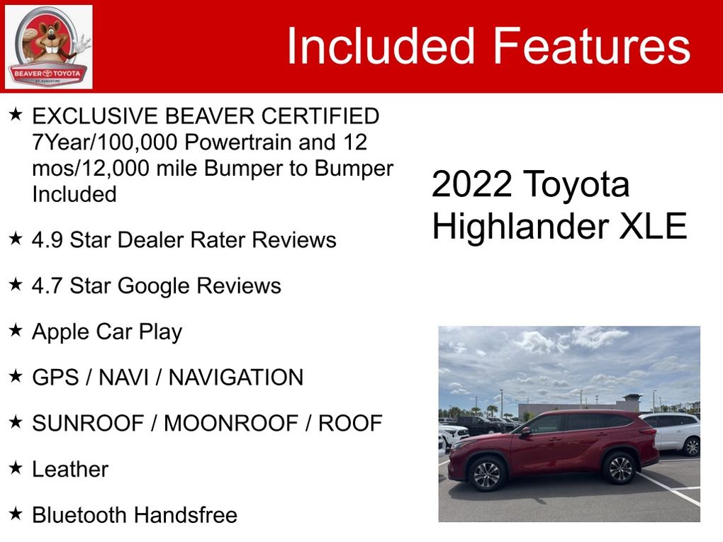Discover the exceptional 2022 Toyota Highlander XLE, a sophisticated and versatile SUV that's ready to elevate your driving experience. With its striking red exterior and meticulously maintained interior, this Highlander is a true standout in the crowded SUV market.