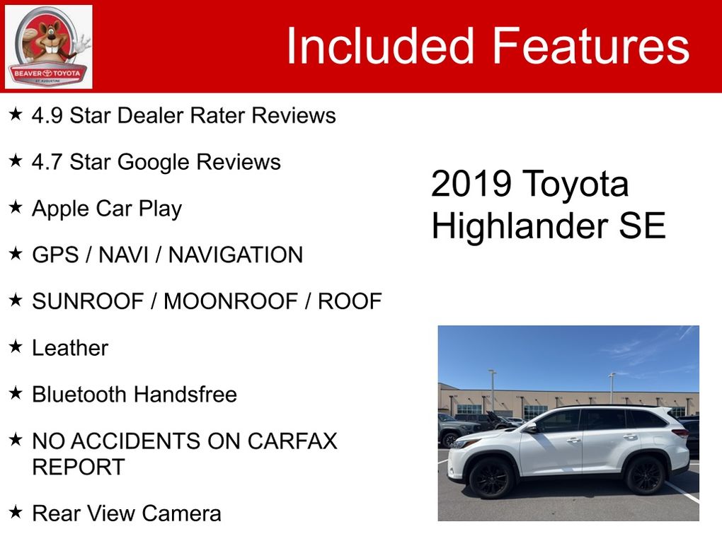 Don't miss your chance to make this exceptional 2019 Toyota Highlander SE your own. Schedule a test drive today and discover the perfect blend of style, capability, and technology that will elevate your driving experience.