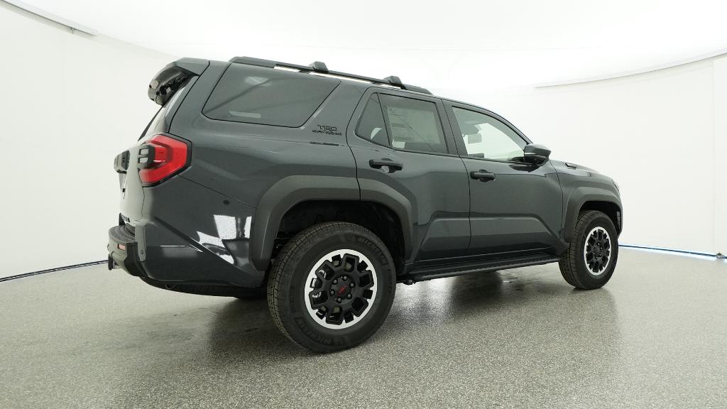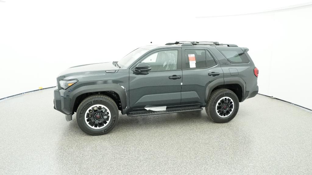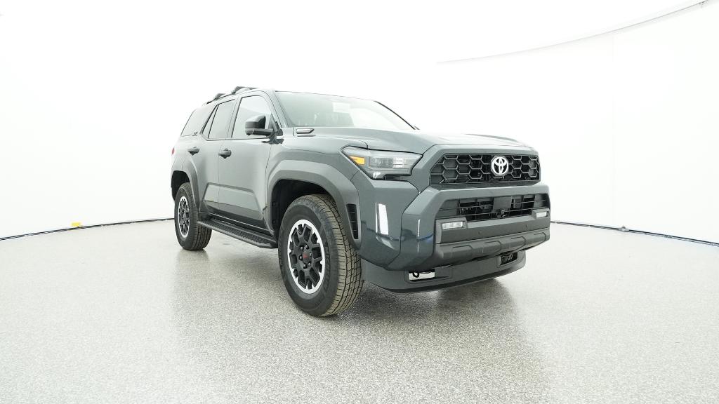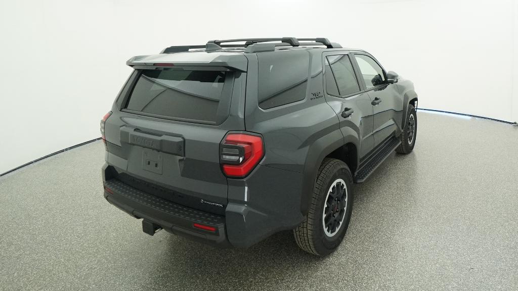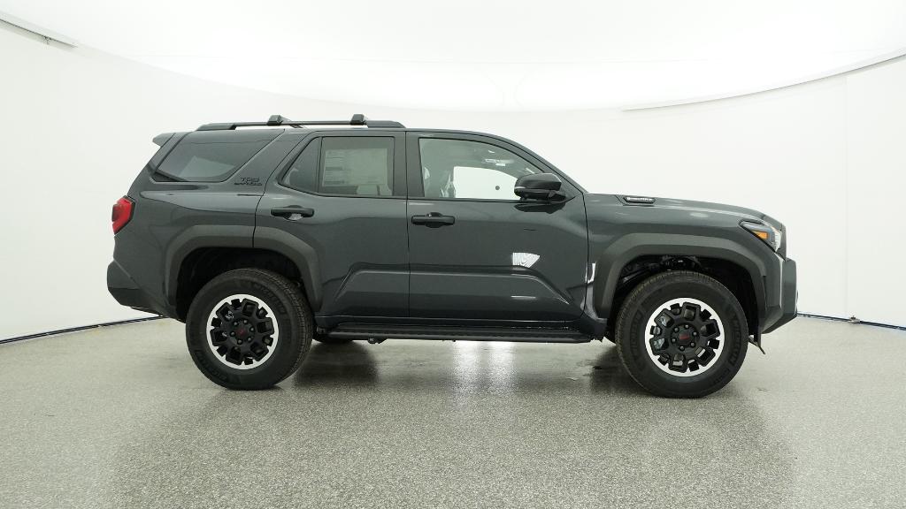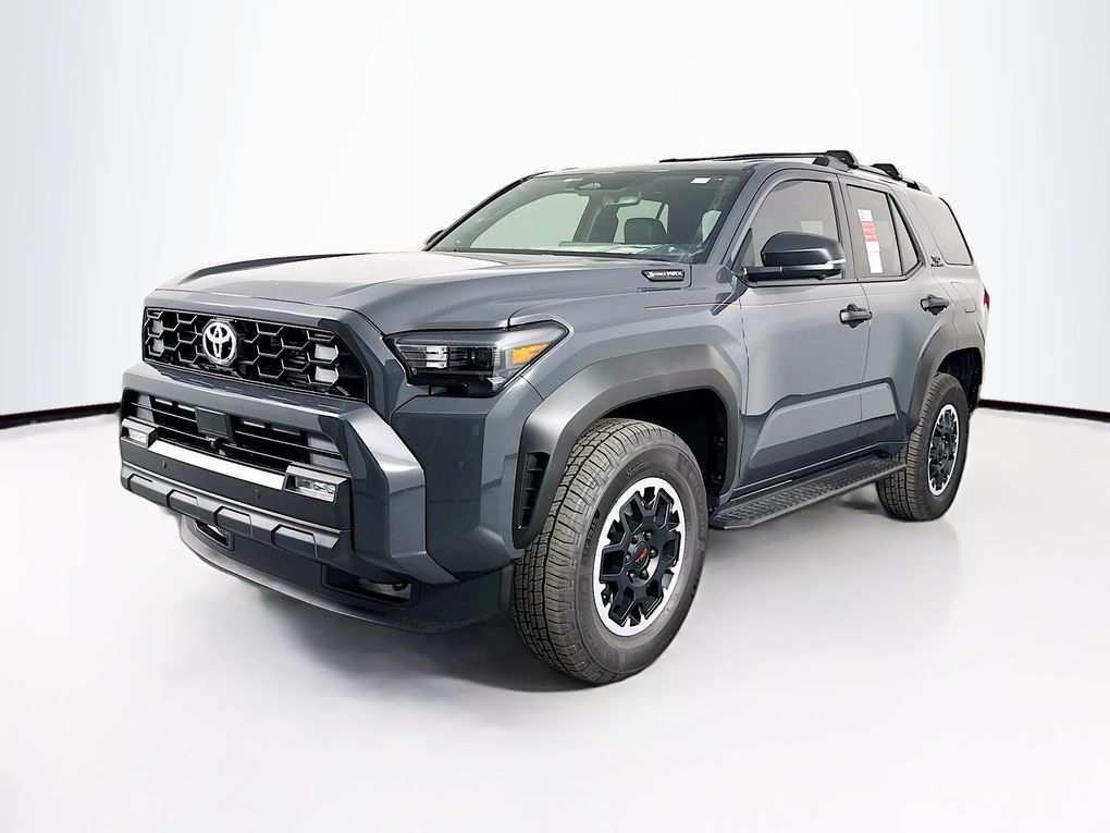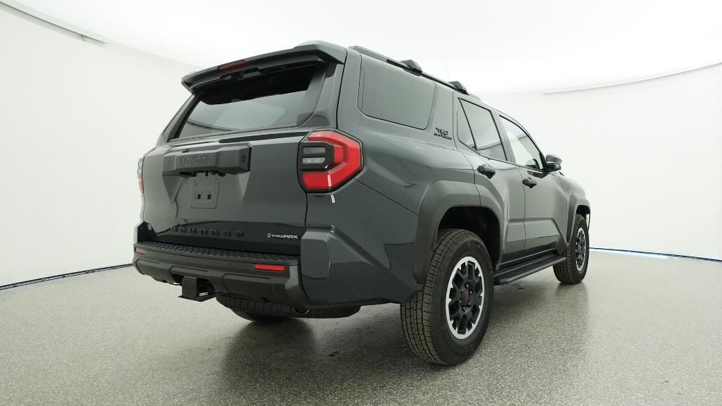 - Black honeycomb-style grille, mirror caps, door handles, and overfenders; color-keyed rear spoiler; black "TRD OFF ROAD" and "4RUNNER" badges
