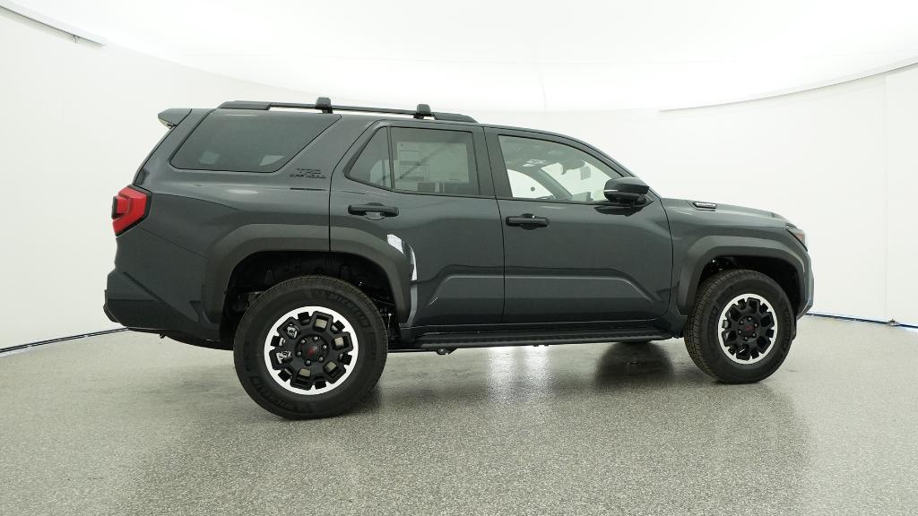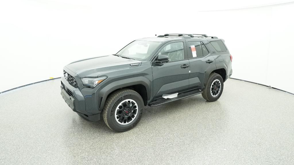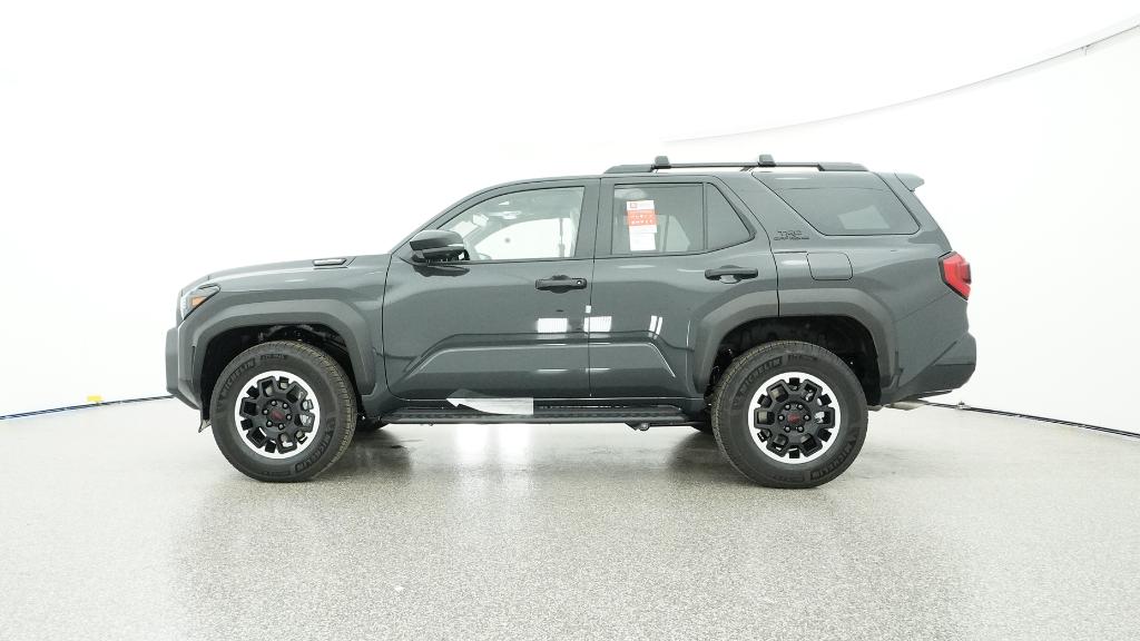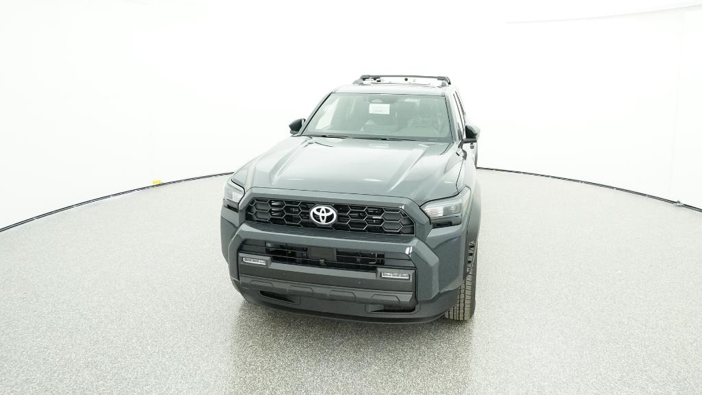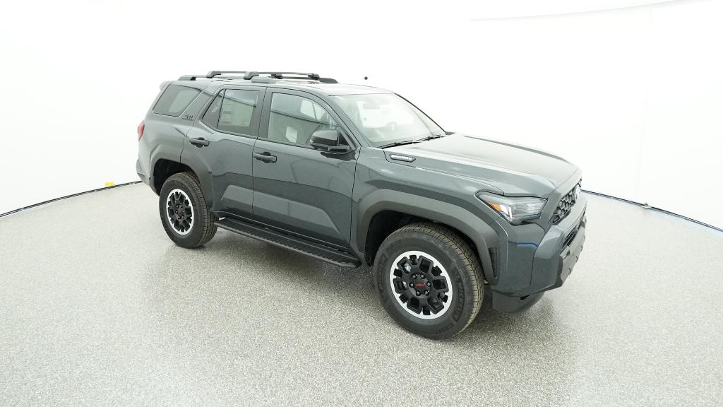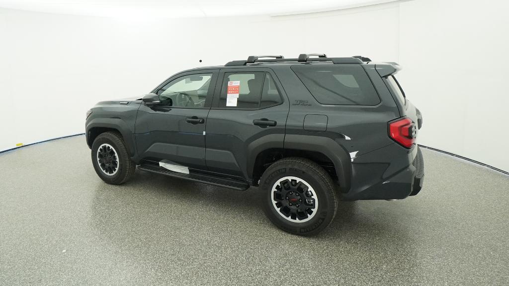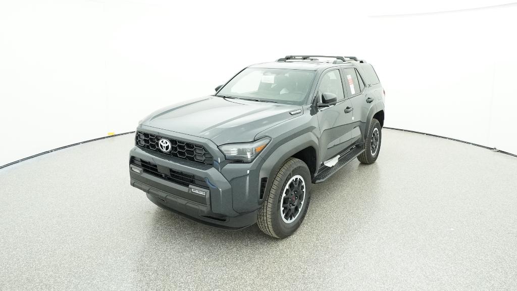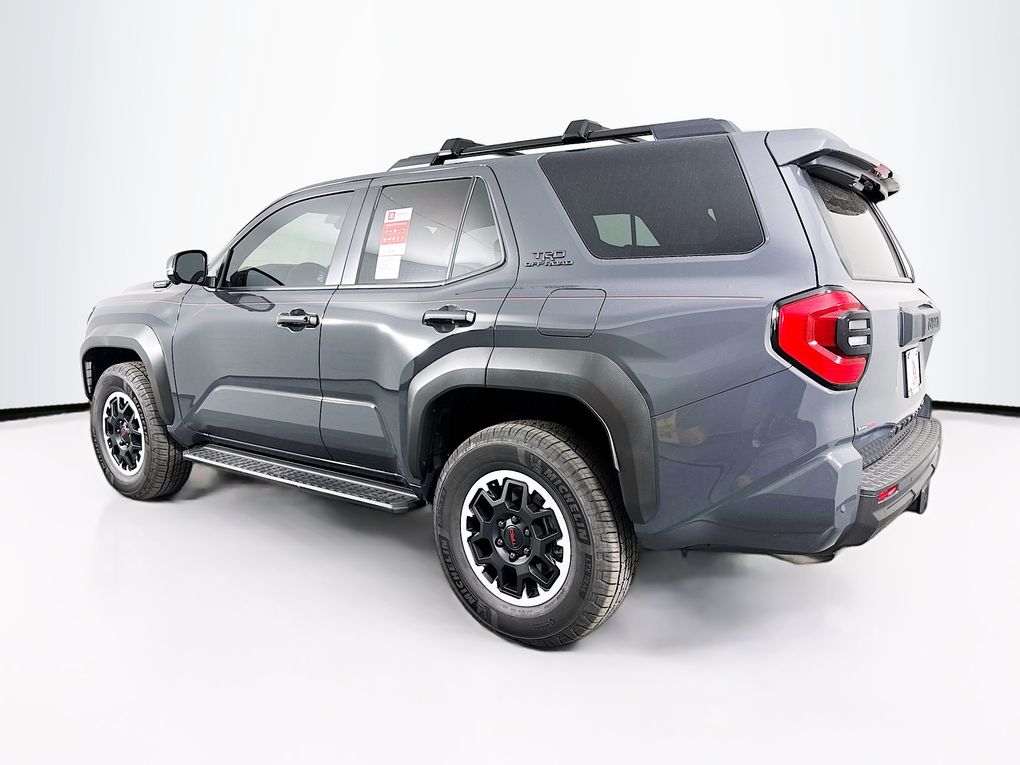 - Black honeycomb-style grille, mirror caps, door handles, and overfenders; color-keyed rear spoiler; black "TRD OFF ROAD" and "4RUNNER" badges