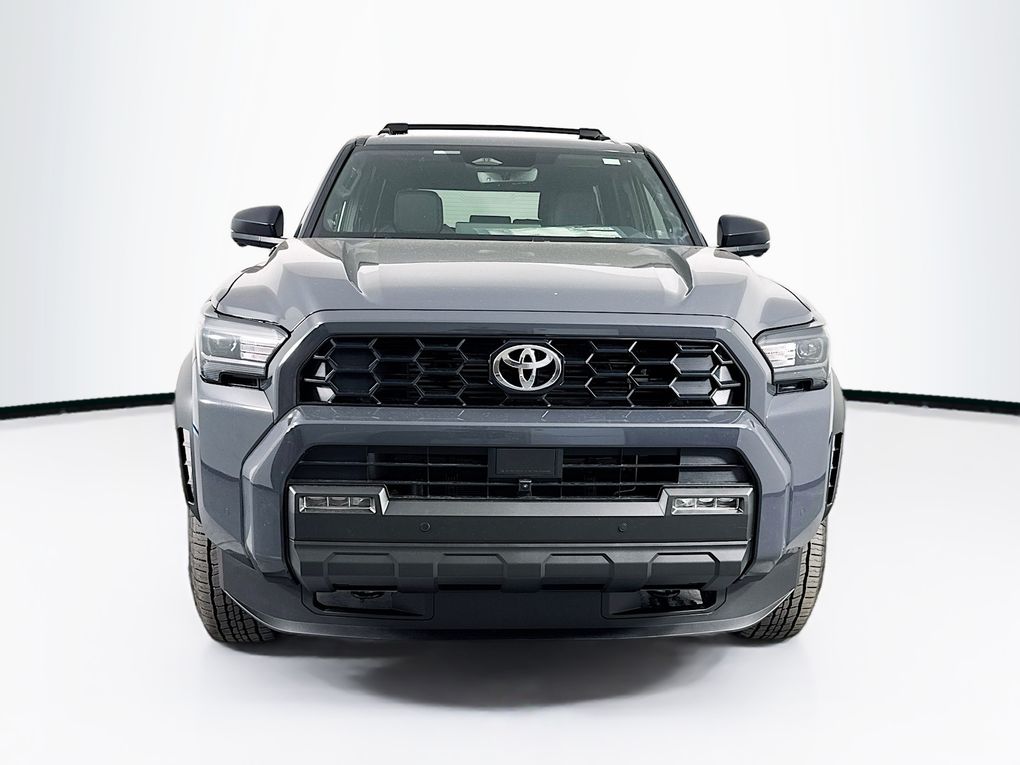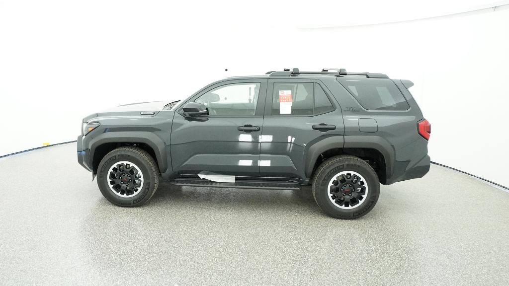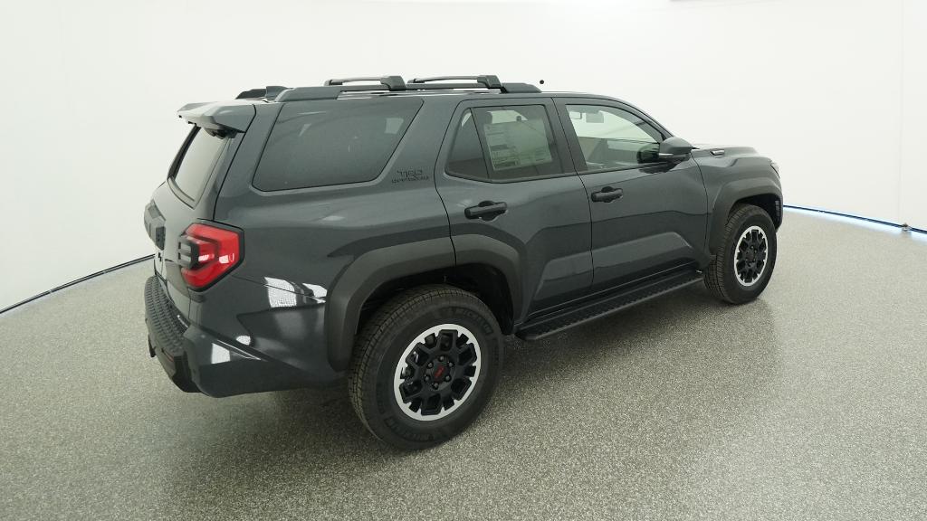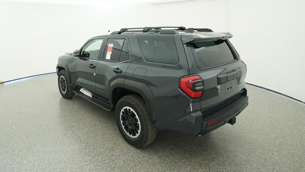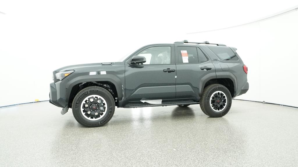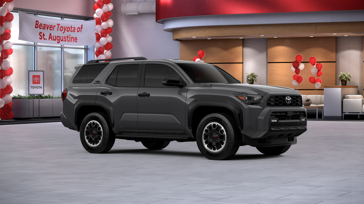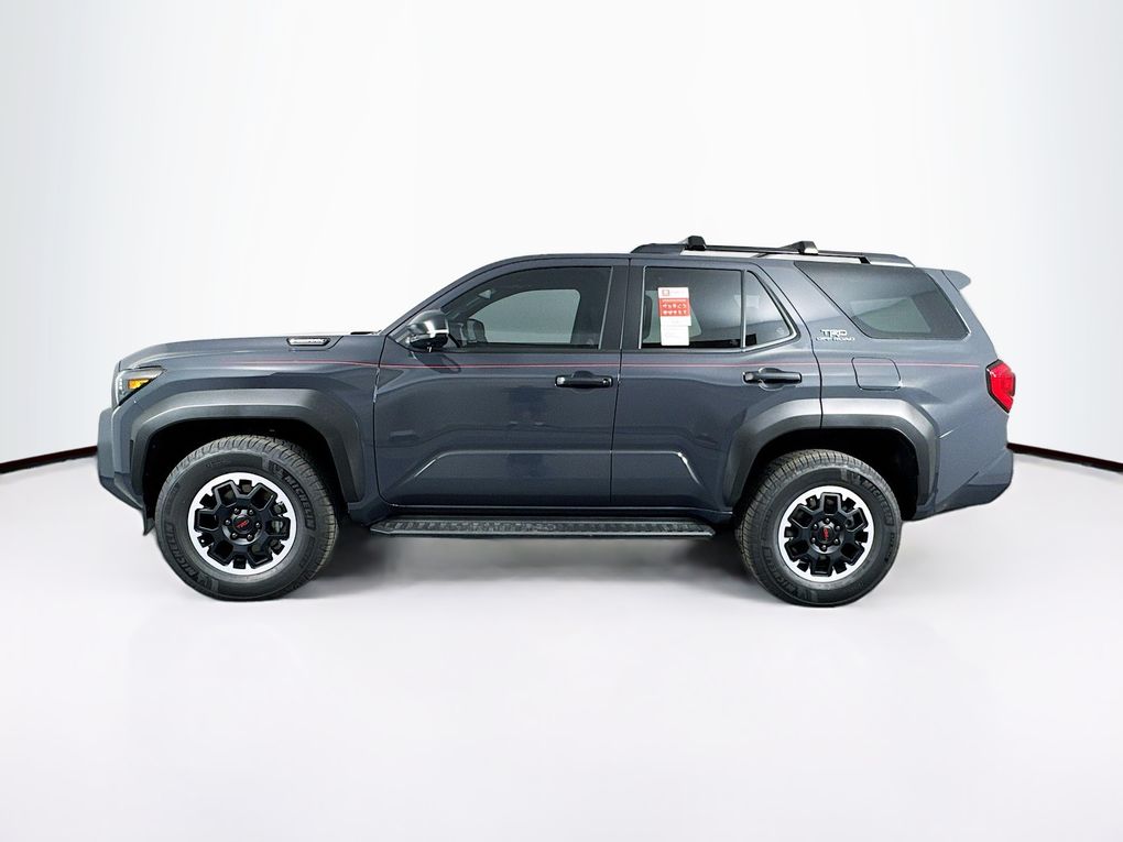 - Black honeycomb-style grille, mirror caps, door handles, and overfenders; color-keyed rear spoiler; black "TRD OFF ROAD" and "4RUNNER" badges