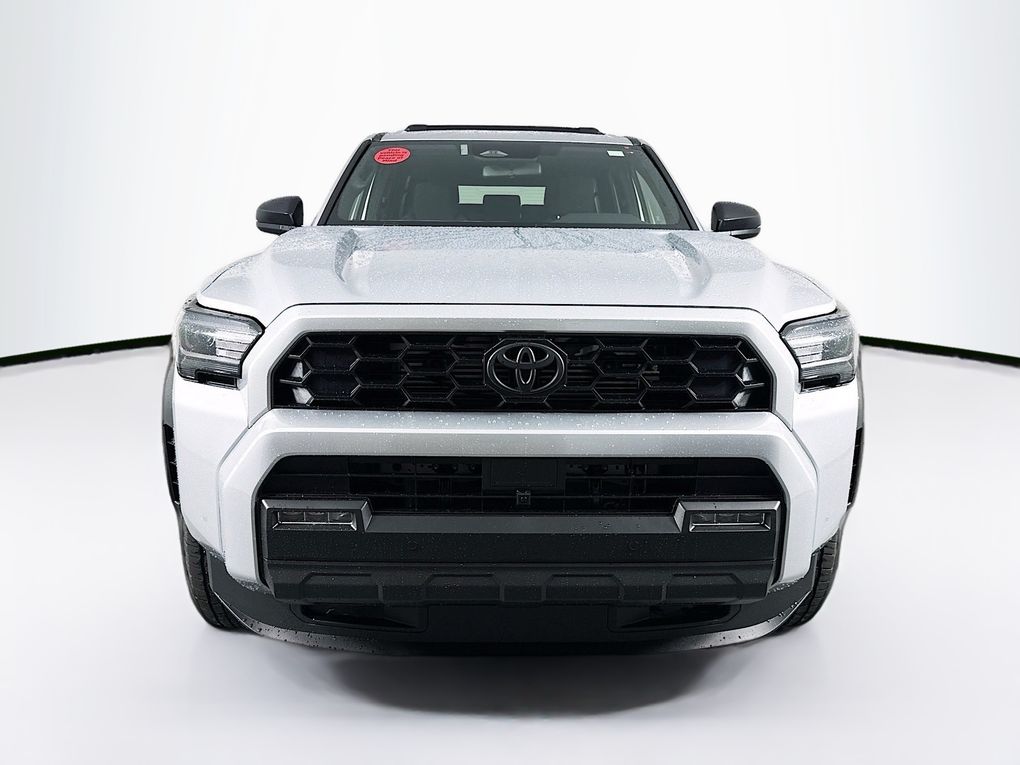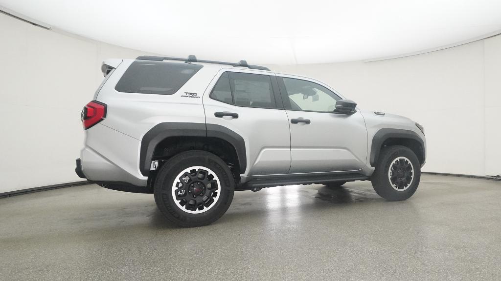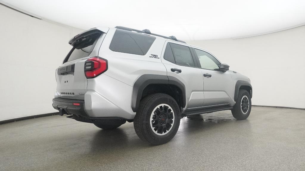 - Black honeycomb-style grille, mirror caps, door handles, and overfenders; color-keyed rear spoiler; black "TRD OFF ROAD" and "4RUNNER" badges