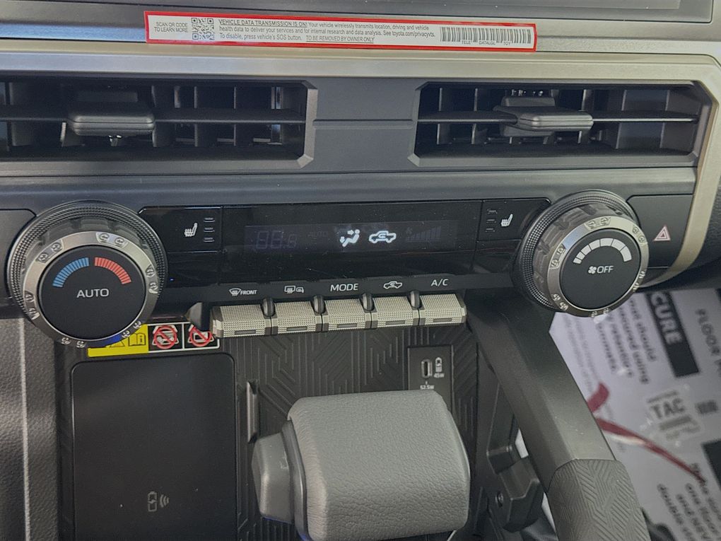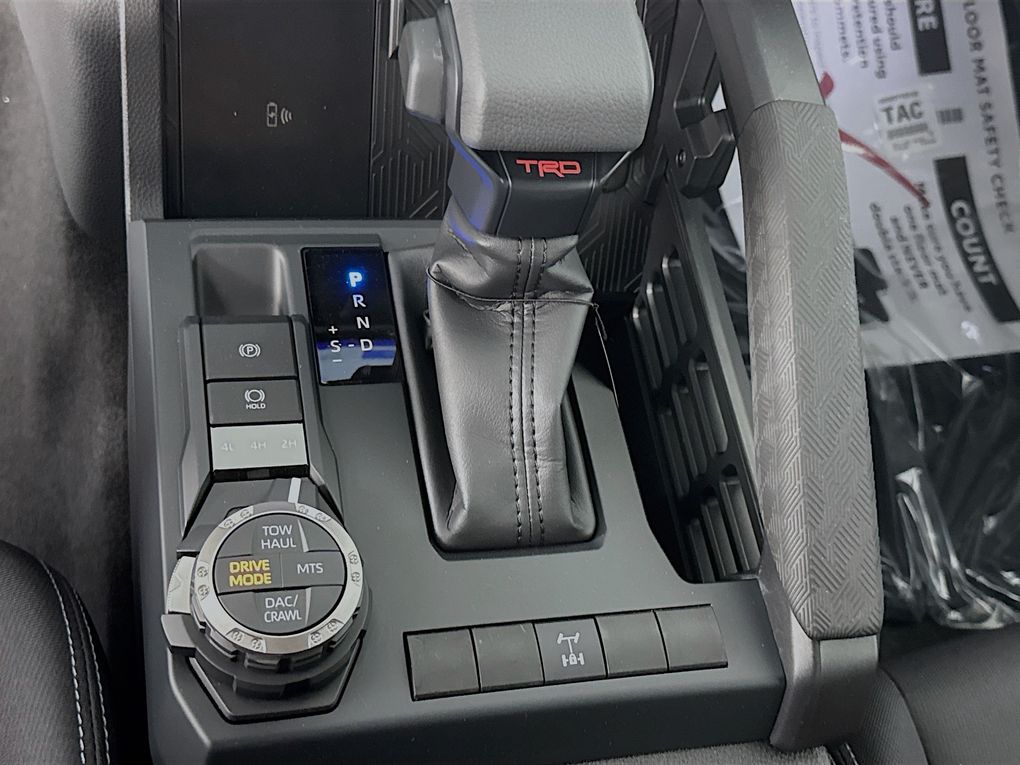 4WD, 3.583 Axle Ratio, 4-Wheel Disc Brakes, 6 Speakers, ABS brakes, Air Conditioning, Alloy wheels, AM/FM radio: SiriusXM, Anti-whiplash front head restraints, Apple CarPlay/Android Auto, Auto High-beam Headlights, Auto-dimming Rear-View mirror, Automatic temperature control, Brake assist, Bumpers: body-color, Driver door bin, Driver vanity mirror, Dual front impact airbags, Dual front side impact airbags, Electronic Stability Control, Emergency communication system: Safety Connect (1-year trial), Exterior Parking Camera Rear, Fabric Seat Trim, Four wheel independent suspension, Front anti-roll bar, Front Bucket Seats, Front Center Armrest, Front fog lights, Front reading lights, Fully automatic headlights, Heated door mirrors, Illuminated entry, JBL Premium Audio, Knee airbag, Leather Shift Knob, Leather steering wheel, Low tire pressure warning, Occupant sensing airbag, Outside temperature display, Overhead airbag, Overhead console, Panic alarm, Passenger door bin, Passenger vanity mirror, Power door mirrors, Power steering, Power windows, Radio: 8" Toyota Audio Multimedia, Rear step bumper, Rear window defroster, Remote keyless entry, Security system, SofTex Seat Trim, Speed control, Speed-sensing steering, Split folding rear seat, Steering wheel mounted audio controls, Tachometer, Telescoping steering wheel, Tilt steering wheel, Traction control, Trip computer, Turn signal indicator mirrors, Variably intermittent wipers, and Wheels: 17" TRD Off-Road Alloy.
