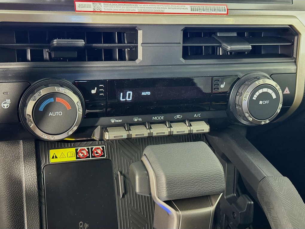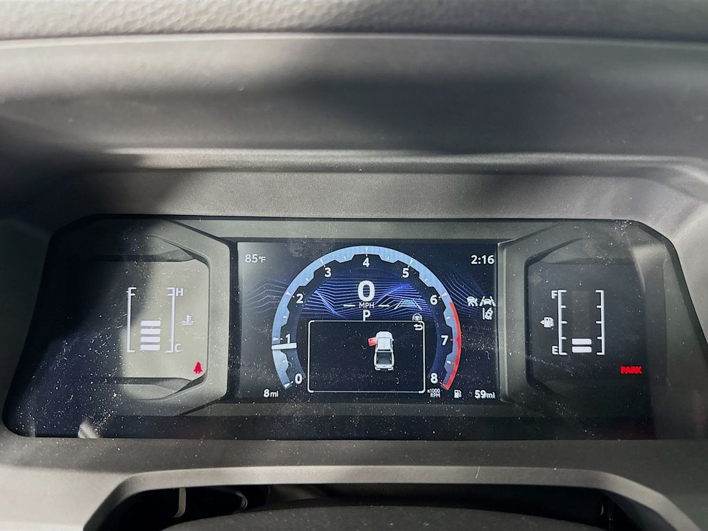3.583 Axle Ratio, 4-Wheel Disc Brakes, 6 Speakers, ABS brakes, Air Conditioning, Alloy wheels, AM/FM radio: SiriusXM, Anti-whiplash front head restraints, Apple CarPlay/Android Auto, Auto High-beam Headlights, Auto-dimming Rear-View mirror, Brake assist, Bumpers: body-color, Driver door bin, Dual front impact airbags, Dual front side impact airbags, Electronic Stability Control, Emergency communication system: Safety Connect (1-year trial), Exterior Parking Camera Rear, Fabric Seat Trim, Four wheel independent suspension, Front anti-roll bar, Front Bucket Seats, Front Center Armrest, Front fog lights, Front reading lights, Fully automatic headlights, Heated door mirrors, Illuminated entry, Knee airbag, Low tire pressure warning, Occupant sensing airbag, Outside temperature display, Overhead airbag, Overhead console, Panic alarm, Passenger door bin, Power door mirrors, Power steering, Power windows, Radio: 8" Toyota Audio Multimedia, Rear step bumper, Rear window defroster, Remote keyless entry, Speed control, Speed-sensing steering, Split folding rear seat, Steering wheel mounted audio controls, Tachometer, Telescoping steering wheel, Tilt steering wheel, Traction control, Trip computer, Variably intermittent wipers, and Wheels: 17" Styled Alloy.