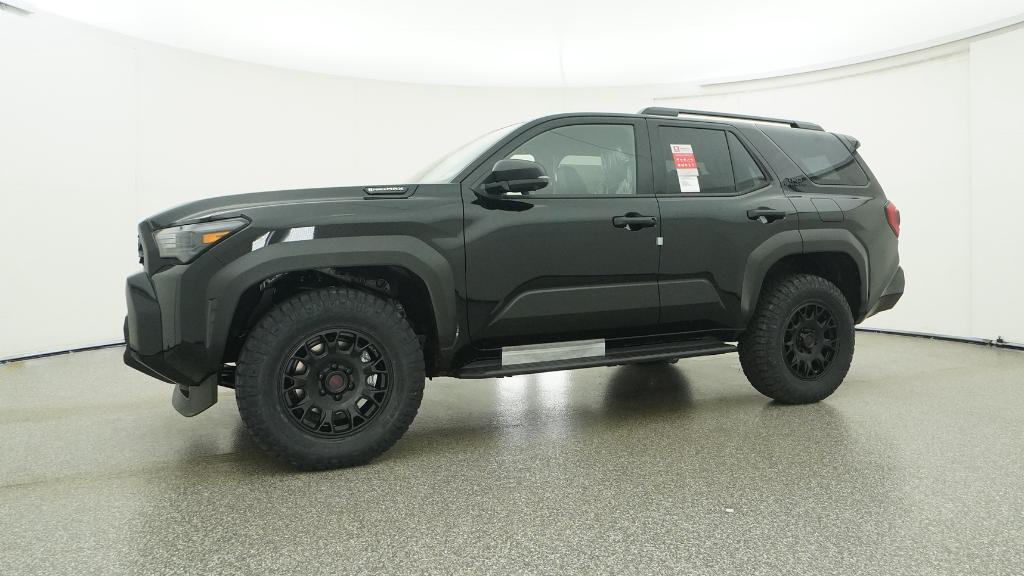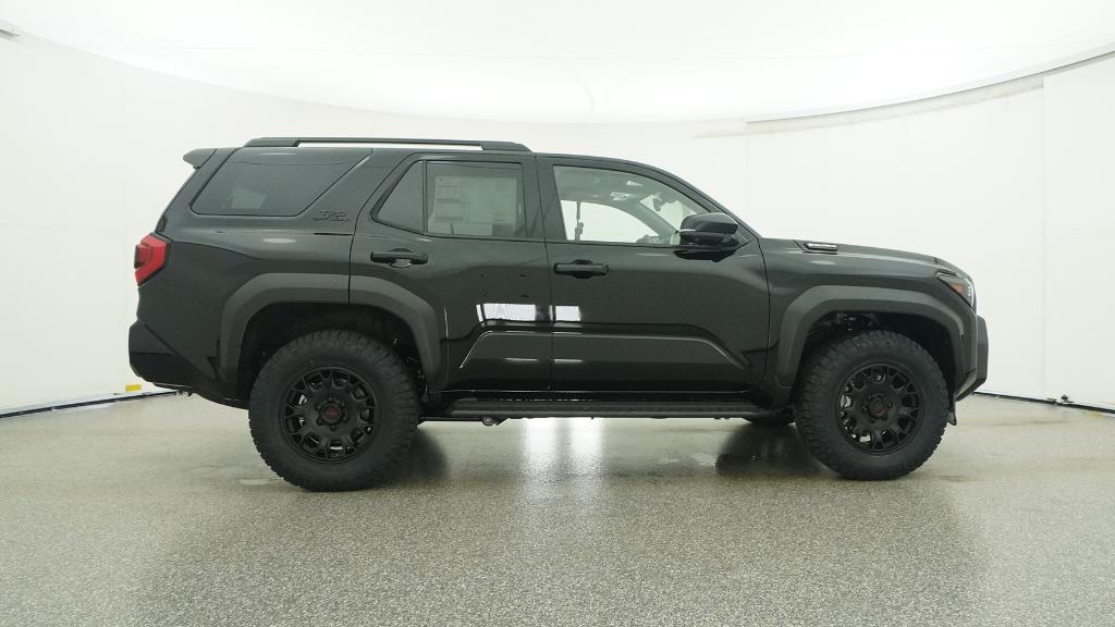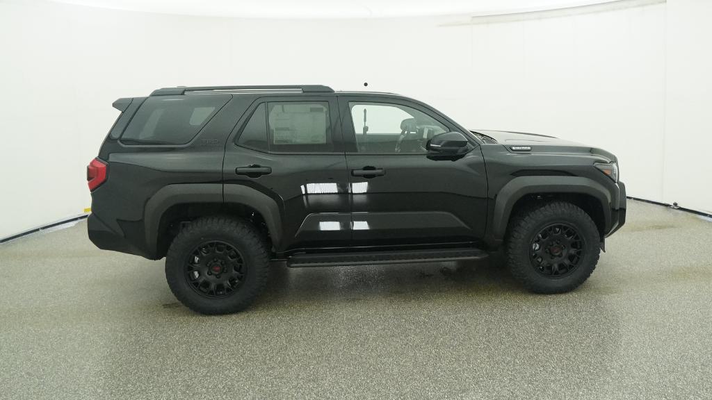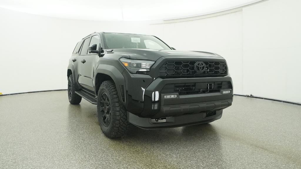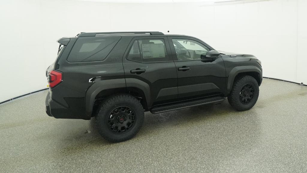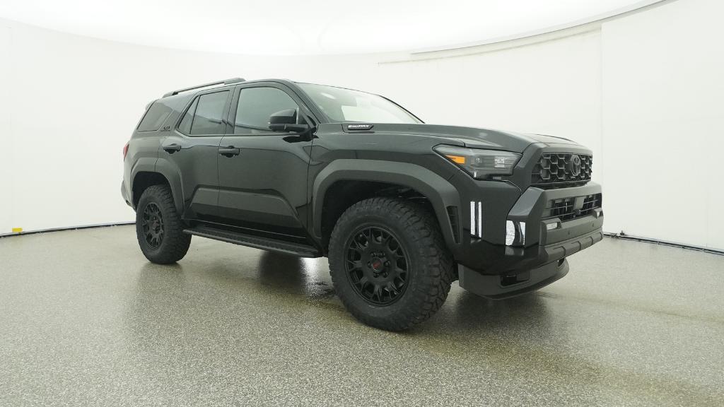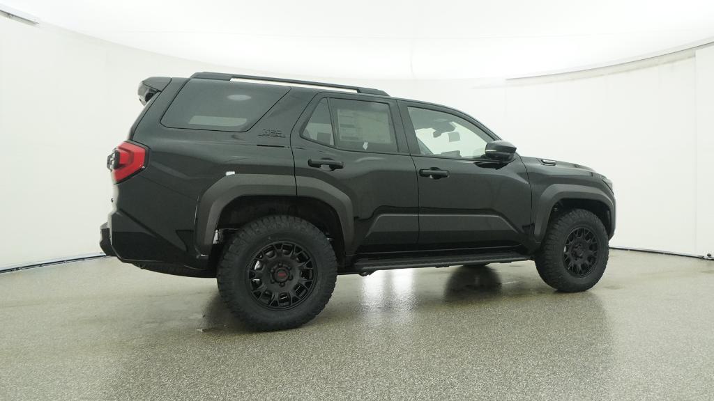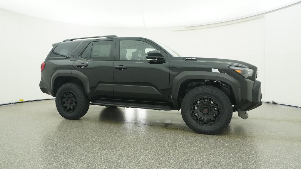 - Black honeycomb-style grille, mirror caps, door handles and overfenders; color-keyed rear spoiler; black "TRD OFF ROAD" and "4RUNNER" badges