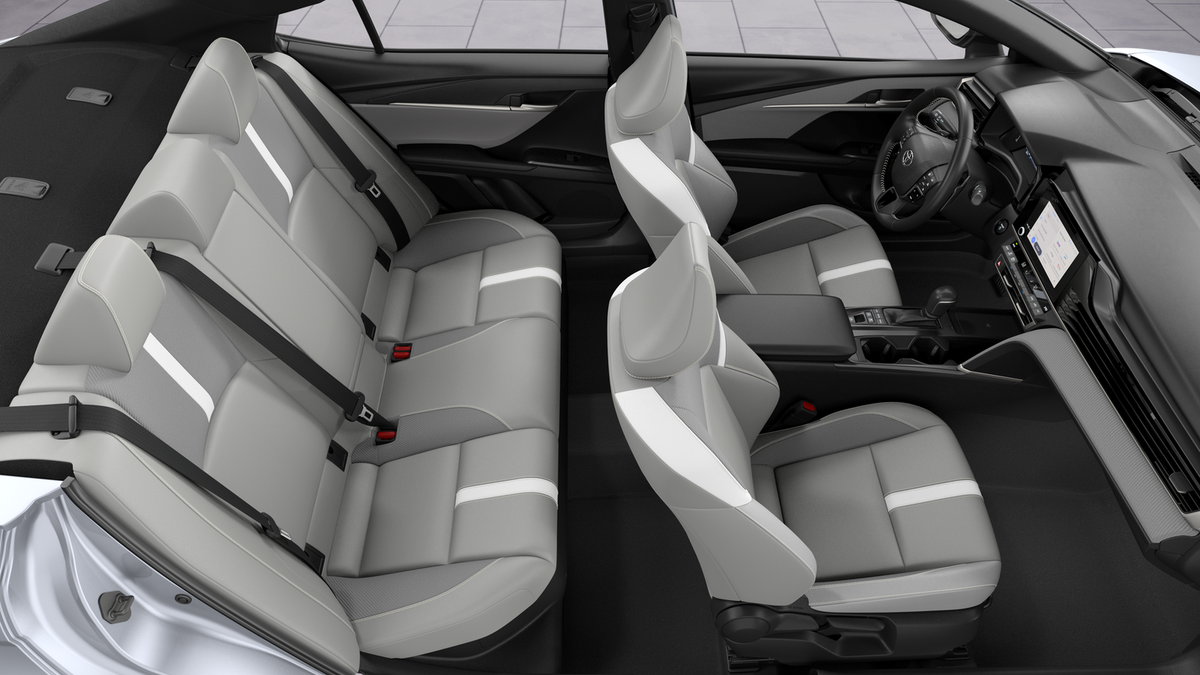 Boulder & Fabric Artificial Leather, 4-Wheel Disc Brakes, 6 Speakers, ABS brakes, Air Conditioning, Alloy wheels, AM/FM radio: SiriusXM, Apple CarPlay/Android Auto, Auto High-beam Headlights, Automatic temperature control, Brake assist, Bumpers: body-color, Delay-off headlights, Driver door bin, Driver vanity mirror, Dual front impact airbags, Dual front side impact airbags, Electronic Stability Control, Emergency communication system: Safety Connect (5-year trial), Exterior Parking Camera Rear, Four wheel independent suspension, Front anti-roll bar, Front Bucket Seats, Front Center Armrest, Front dual zone A/C, Front reading lights, Front Seats, Fully automatic headlights, Heated door mirrors, Heated Front Seats, Illuminated entry, Knee airbag, Leather Shift Knob, Leather steering wheel, Low tire pressure warning, Occupant sensing airbag, Outside temperature display, Overhead airbag, Overhead console, Panic alarm, Passenger door bin, Passenger vanity mirror, Power door mirrors, Power driver seat, Power steering, Power windows, Radio data system, Radio: 12.3" Toyota Multimedia Audio, Radio: 8" Toyota Audio Multimedia, Rear anti-roll bar, Rear reading lights, Rear seat center armrest, Rear window defroster, Remote keyless entry, Security system, SofTex and Fabric Seat Trim, Speed control, Speed-sensing steering, Split folding rear seat, Spoiler, Steering wheel mounted audio controls, Telescoping steering wheel, Tilt steering wheel, Traction control, Trip computer, Turn signal indicator mirrors, Variably intermittent wipers, and Wheels: 18" Multi-Spoke Black-Finished Alloy.