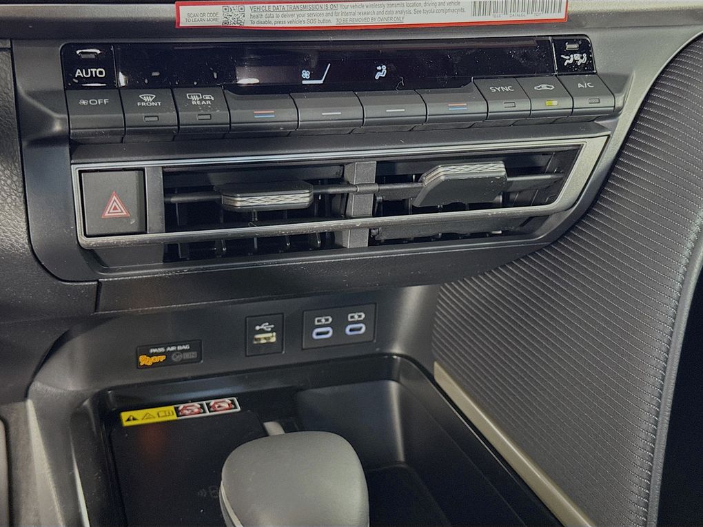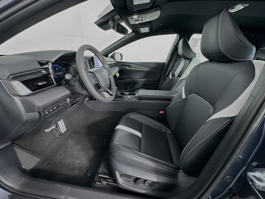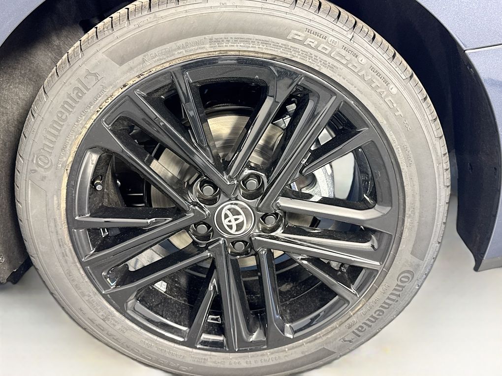 Blk & Fabric Artificial Leather, 4-Wheel Disc Brakes, 6 Speakers, ABS brakes, Air Conditioning, Alloy wheels, AM/FM radio: SiriusXM, Apple CarPlay/Android Auto, Auto High-beam Headlights, Automatic temperature control, Brake assist, Bumpers: body-color, Delay-off headlights, Driver door bin, Driver vanity mirror, Dual front impact airbags, Dual front side impact airbags, Electronic Stability Control, Emergency communication system: Safety Connect (5-year trial), Exterior Parking Camera Rear, Four wheel independent suspension, Front anti-roll bar, Front Bucket Seats, Front Center Armrest, Front dual zone A/C, Front reading lights, Front Seats, Fully automatic headlights, Heated door mirrors, Heated Front Seats, Illuminated entry, Knee airbag, Leather Shift Knob, Leather steering wheel, Low tire pressure warning, Occupant sensing airbag, Outside temperature display, Overhead airbag, Overhead console, Panic alarm, Passenger door bin, Passenger vanity mirror, Power door mirrors, Power driver seat, Power steering, Power windows, Radio data system, Radio: 12.3" Toyota Multimedia Audio, Radio: 8" Toyota Audio Multimedia, Rear anti-roll bar, Rear reading lights, Rear seat center armrest, Rear window defroster, Remote keyless entry, Security system, SofTex and Fabric Seat Trim, Speed control, Speed-sensing steering, Split folding rear seat, Spoiler, Steering wheel mounted audio controls, Telescoping steering wheel, Tilt steering wheel, Traction control, Trip computer, Turn signal indicator mirrors, Variably intermittent wipers, and Wheels: 18" Multi-Spoke Black-Finished Alloy.