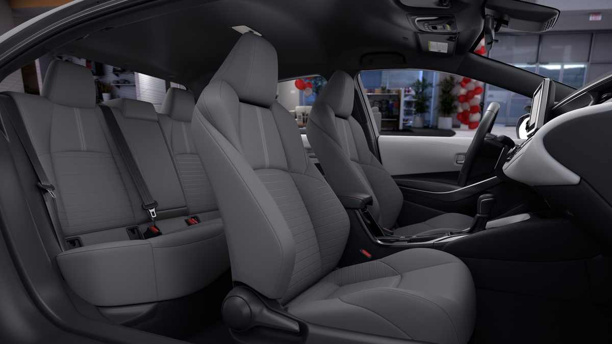 4-Wheel Disc Brakes, 6 Speakers, ABS brakes, Air Conditioning, Alloy wheels, AM/FM radio: SiriusXM, Apple CarPlay/Android Auto, Auto High-beam Headlights, Automatic temperature control, Brake assist, Bumpers: body-color, Delay-off headlights, Driver door bin, Driver vanity mirror, Dual front impact airbags, Dual front side impact airbags, Electronic Stability Control, Emergency communication system: Safety Connect (up to 10-year trial subscription), Exterior Parking Camera Rear, Fabric Seat Trim, Four wheel independent suspension, Front anti-roll bar, Front Bucket Seats, Front Center Armrest, Front reading lights, Front Sport Seats, Fully automatic headlights, Heated door mirrors, Illuminated entry, Knee airbag, Leather steering wheel, Low tire pressure warning, Occupant sensing airbag, Outside temperature display, Overhead airbag, Panic alarm, Passenger door bin, Passenger vanity mirror, Power door mirrors, Power steering, Power windows, Radio data system, Radio: 8" Toyota Audio Multimedia, Rear anti-roll bar, Rear seat center armrest, Rear side impact airbag, Rear window defroster, Remote keyless entry, Speed control, Split folding rear seat, Spoiler, Steering wheel mounted audio controls, Tachometer, Telescoping steering wheel, Tilt steering wheel, Traction control, Trip computer, Turn signal indicator mirrors, Variably intermittent wipers, and Wheels: 18" Alloy with Graphite-Colored Finish.