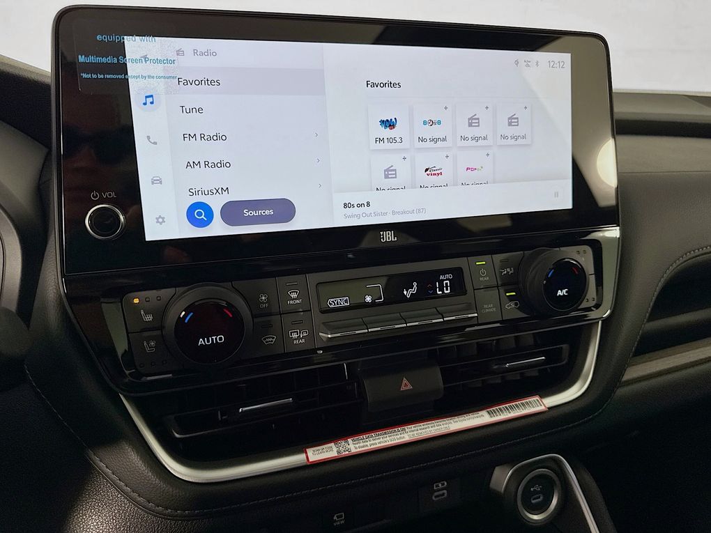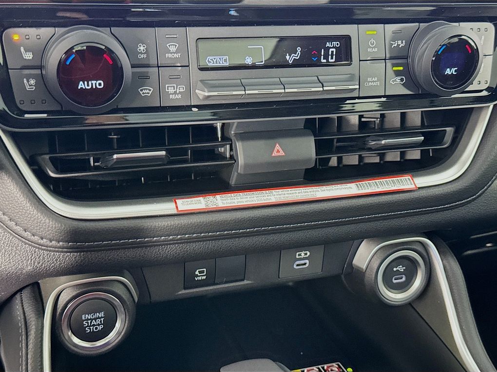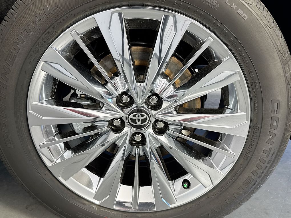 11 Speakers, 3rd row seats: split-bench, 4-Wheel Disc Brakes, ABS brakes, Air Conditioning, Alloy wheels, AM/FM radio: SiriusXM, Apple CarPlay/Android Auto, Auto High-beam Headlights, Auto-dimming Rear-View mirror, Automatic temperature control, Brake assist, Bumpers: body-color, Delay-off headlights, Driver door bin, Driver vanity mirror, Dual front impact airbags, Dual front side impact airbags, Electronic Stability Control, Emergency communication system: Safety Connect (up to 10-year trial subscription), Exterior Parking Camera Rear, Four wheel independent suspension, Front anti-roll bar, Front Bucket Seats, Front Center Armrest, Front dual zone A/C, Front fog lights, Front reading lights, Fully automatic headlights, Garage door transmitter: HomeLink, Heads-Up Display, Heated and Ventilated Front Seats, Heated door mirrors, Heated front seats, Heated rear seats, Heated steering wheel, Illuminated entry, Knee airbag, Leather Seat Trim, Leather Shift Knob, Leather steering wheel, Low tire pressure warning, Memory seat, Navigation system: Drive Connect Cloud Navigation (1-year trial subscription), Occupant sensing airbag, Outside temperature display, Overhead airbag, Overhead console, Panic alarm, Passenger door bin, Passenger vanity mirror, Power door mirrors, Power driver seat, Power Liftgate, Power moonroof, Power passenger seat, Power steering, Power windows, Radio: 12.3" Toyota Audio Multimedia with JBL Audio, Rain sensing wipers, Rear air conditioning, Rear anti-roll bar, Rear reading lights, Rear window defroster, Rear window wiper, Reclining 3rd row seat, Remote keyless entry, Security system, Speed control, Speed-sensing steering, Split folding rear seat, Spoiler, Steering wheel mounted audio controls, Tachometer, Telescoping steering wheel, Tilt steering wheel, Traction control, Trip computer, Turn signal indicator mirrors, Variably intermittent wipers, Ventilated front seats, Ventilated rear seats, and Wheels: 20" Silver Multi-Spoke Aluminum.