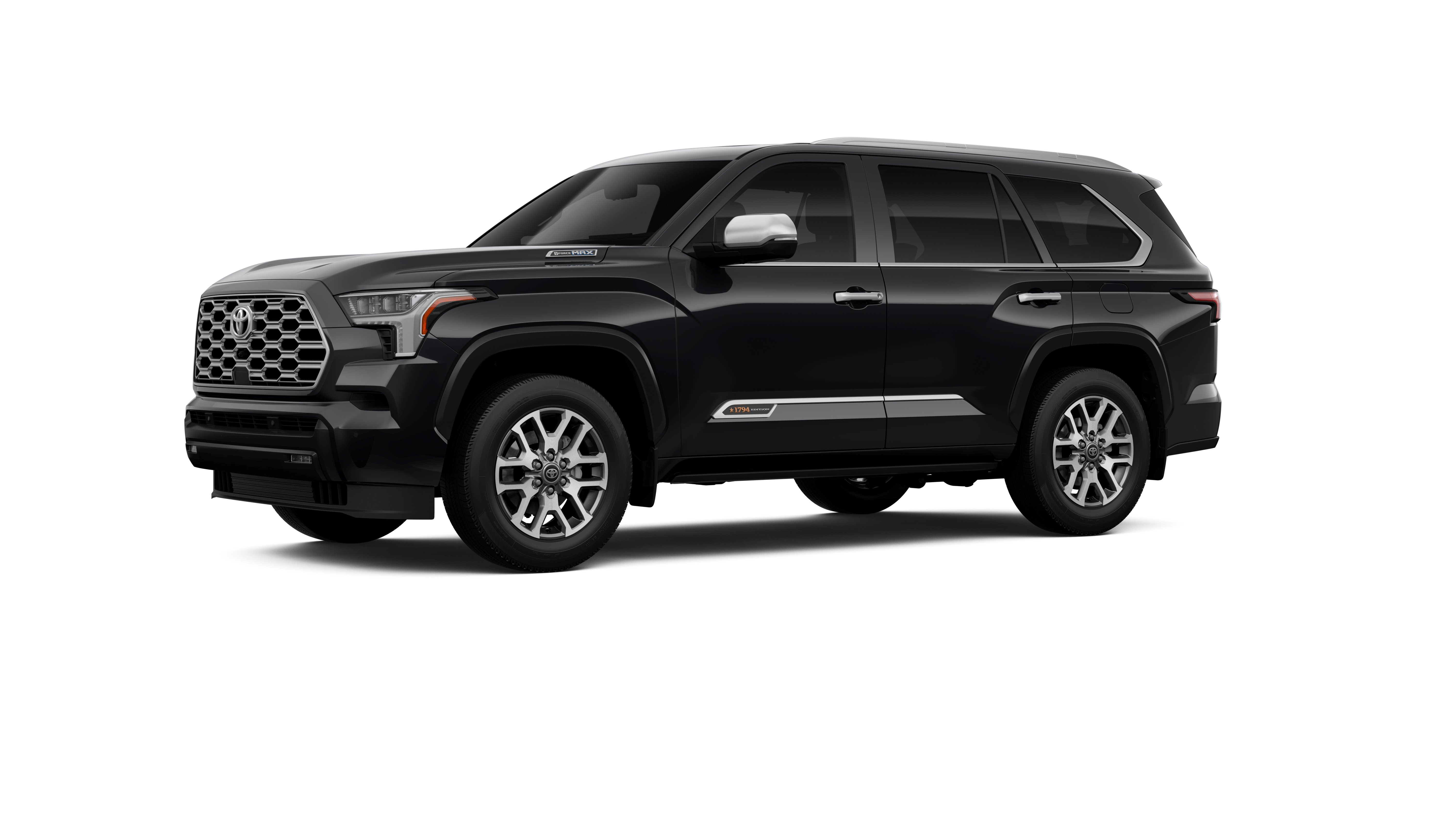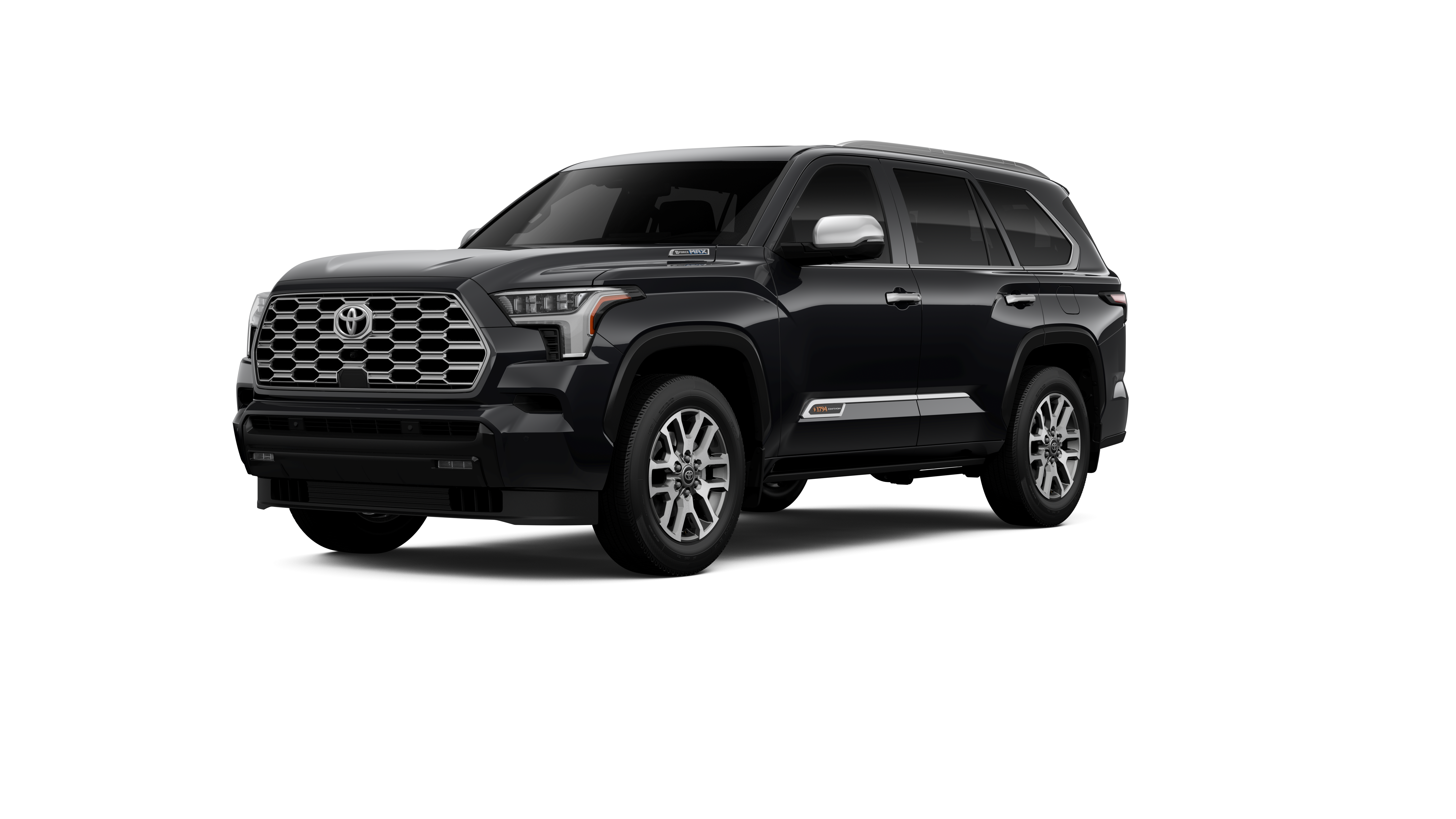 - Bright-chrome "SEQUOIA" rear door badge, chrome "1794 EDITION" door badge and garnish, door handles, window molding and mirror caps; color-keyed tailgate spoiler; black-painted overfenders