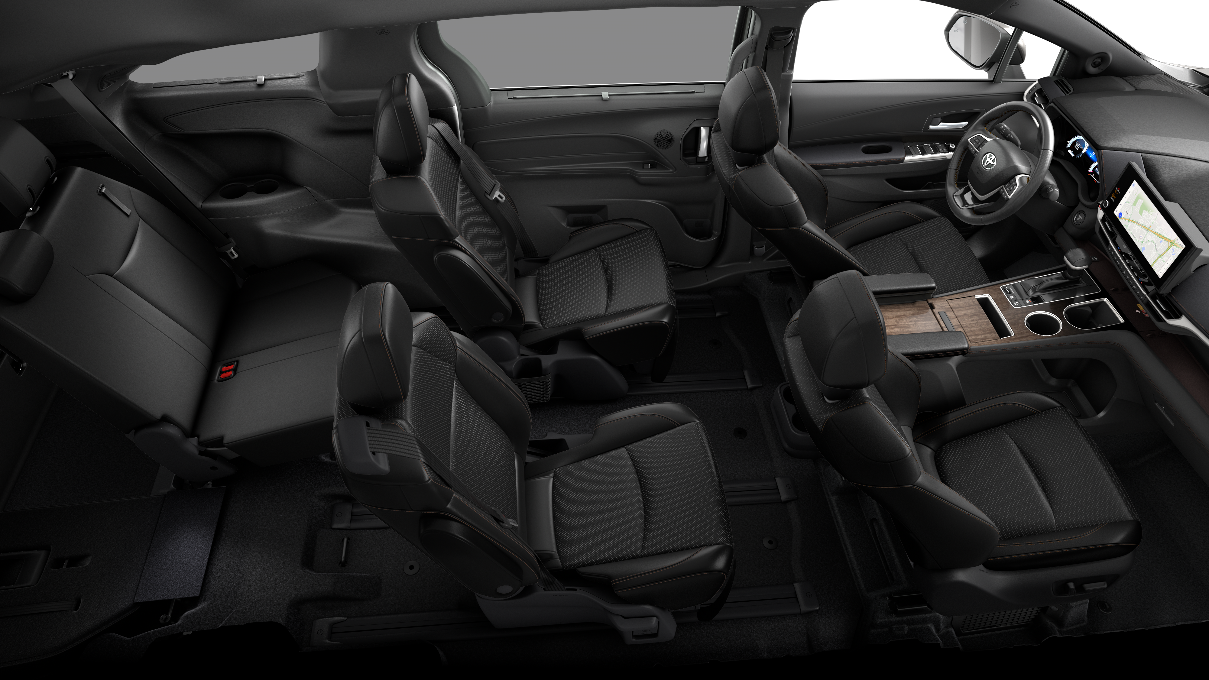 - 7-passenger seating with premium leather-trimmed second-row-seat captain's chairs with super-long-slide feature and ottomans