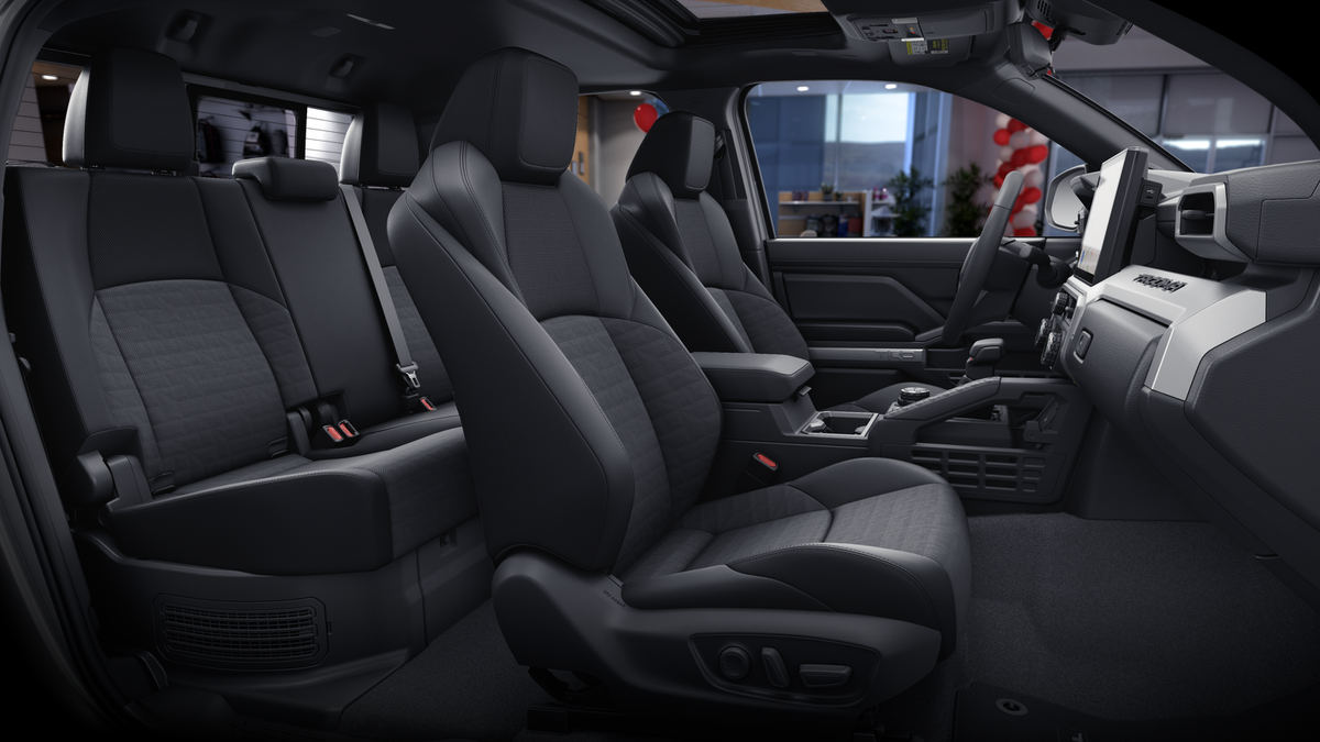 - Fabric-trimmed seats; 6-way manually adjustable driver and front passenger seats with 2-way power-adjustable lumbar support on driver's seat only