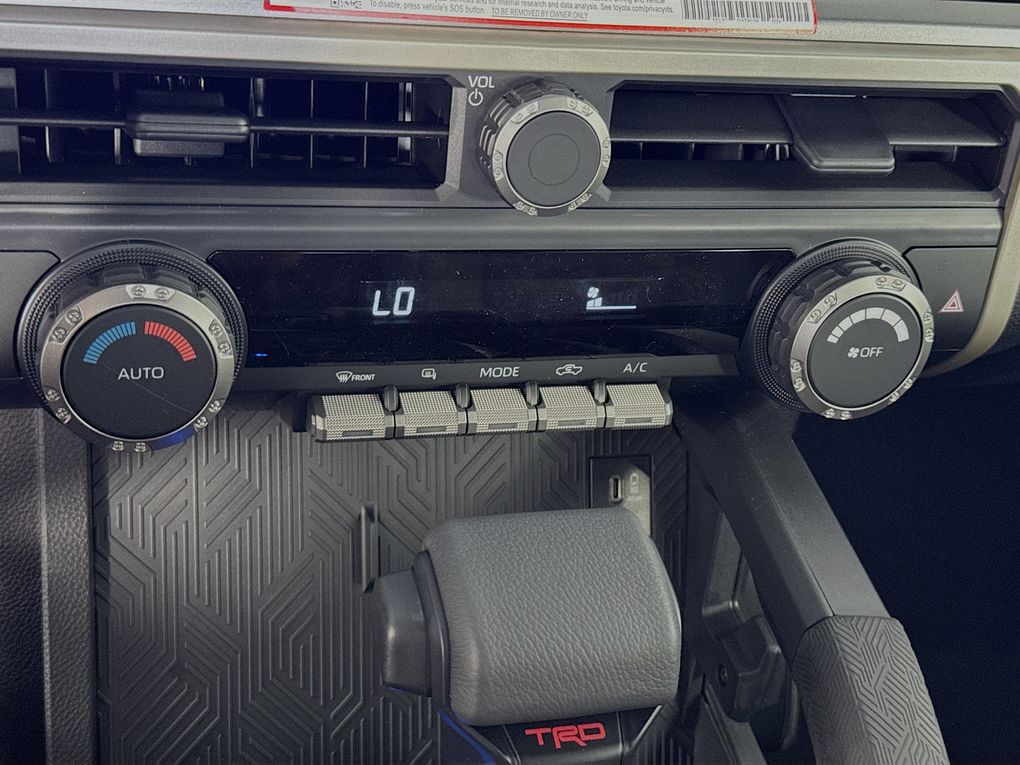 Step inside and discover the ultimate in comfort and convenience. The Tacoma Hybrid's interior is designed with your needs in mind, featuring a leather-wrapped steering wheel, automatic temperature control, and an auto-dimming rear-view mirror. Stay connected with the latest technology, including Apple CarPlay, Android Auto, and the Safety Connect emergency communication system.