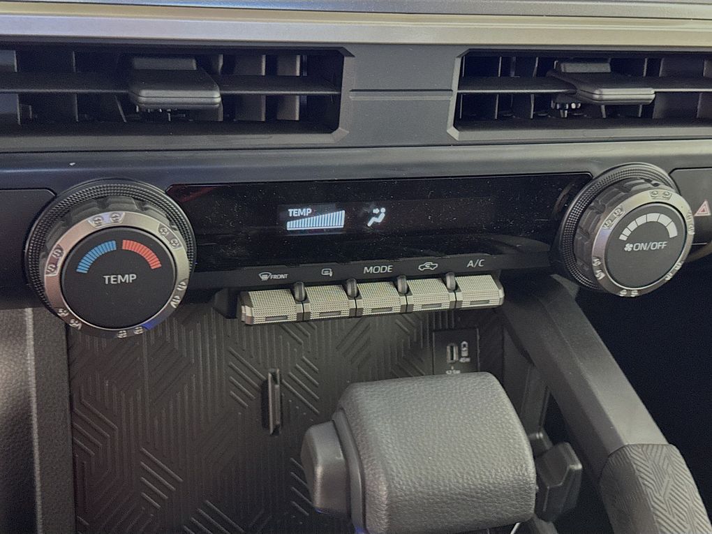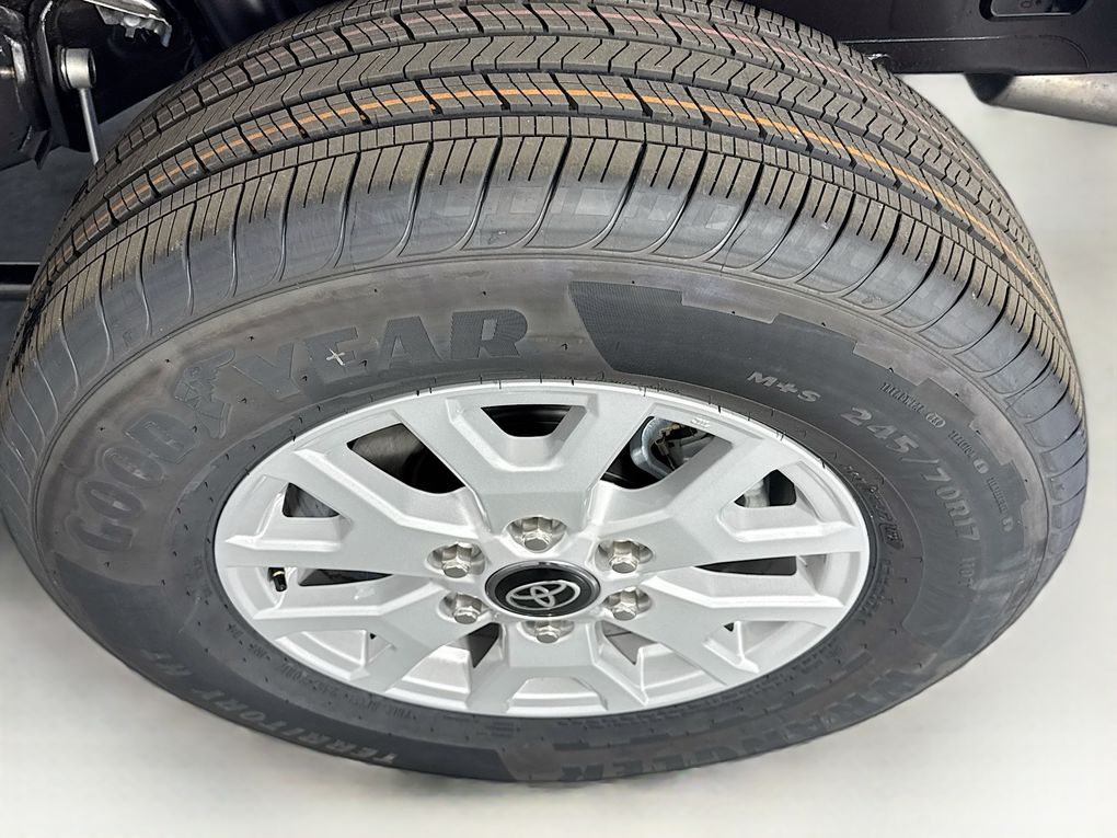 3.583 Axle Ratio, 4-Wheel Disc Brakes, 6 Speakers, ABS brakes, Air Conditioning, Alloy wheels, AM/FM radio: SiriusXM, Anti-whiplash front head restraints, Apple CarPlay/Android Auto, Auto High-beam Headlights, Auto-dimming Rear-View mirror, Brake assist, Bumpers: body-color, Driver door bin, Dual front impact airbags, Dual front side impact airbags, Electronic Stability Control, Emergency communication system: Safety Connect (up to 10-year trial subscription), Exterior Parking Camera Rear, Fabric Seat Trim, Four wheel independent suspension, Front anti-roll bar, Front Bucket Seats, Front Center Armrest, Front fog lights, Front reading lights, Fully automatic headlights, Heated door mirrors, Illuminated entry, Knee airbag, Low tire pressure warning, Occupant sensing airbag, Outside temperature display, Overhead airbag, Overhead console, Panic alarm, Passenger door bin, Power door mirrors, Power steering, Power windows, Radio: 8" Toyota Audio Multimedia, Rear step bumper, Rear window defroster, Remote keyless entry, Speed control, Speed-sensing steering, Split folding rear seat, Steering wheel mounted audio controls, Tachometer, Telescoping steering wheel, Tilt steering wheel, Traction control, Trip computer, Variably intermittent wipers, and Wheels: 17" Styled Alloy.
