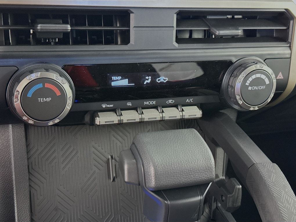 3.583 Axle Ratio, 4-Wheel Disc Brakes, 6 Speakers, ABS brakes, Air Conditioning, Alloy wheels, AM/FM radio: SiriusXM, Anti-whiplash front head restraints, Apple CarPlay/Android Auto, Auto High-beam Headlights, Auto-dimming Rear-View mirror, Brake assist, Bumpers: body-color, Driver door bin, Dual front impact airbags, Dual front side impact airbags, Electronic Stability Control, Emergency communication system: Safety Connect (up to 10-year trial subscription), Exterior Parking Camera Rear, Fabric Seat Trim, Four wheel independent suspension, Front anti-roll bar, Front Bucket Seats, Front Center Armrest, Front fog lights, Front reading lights, Fully automatic headlights, Heated door mirrors, Illuminated entry, Knee airbag, Low tire pressure warning, Occupant sensing airbag, Outside temperature display, Overhead airbag, Overhead console, Panic alarm, Passenger door bin, Power door mirrors, Power steering, Power windows, Radio: 8" Toyota Audio Multimedia, Rear step bumper, Rear window defroster, Remote keyless entry, Speed control, Speed-sensing steering, Split folding rear seat, Steering wheel mounted audio controls, Tachometer, Telescoping steering wheel, Tilt steering wheel, Traction control, Trip computer, Variably intermittent wipers, and Wheels: 17" Styled Alloy.