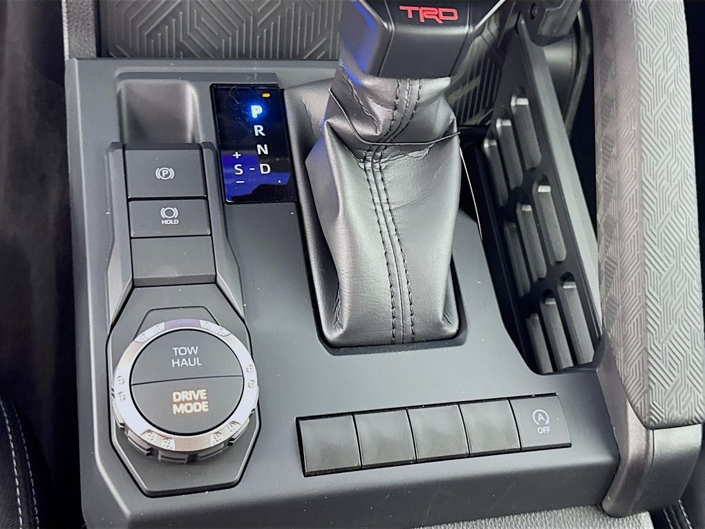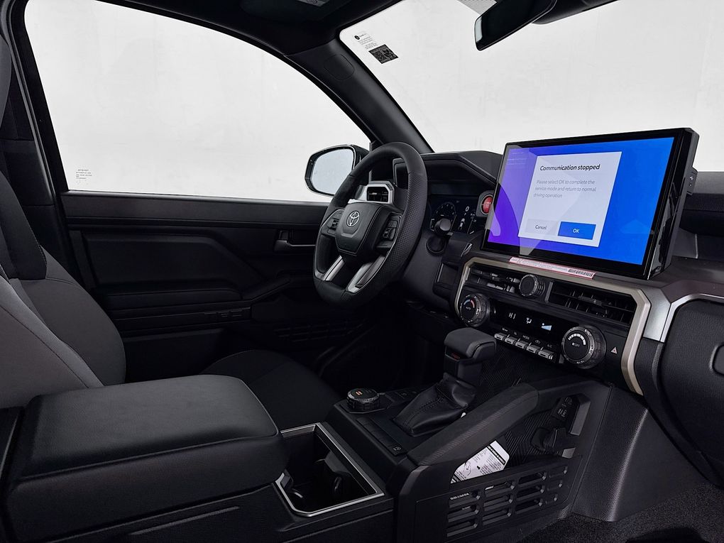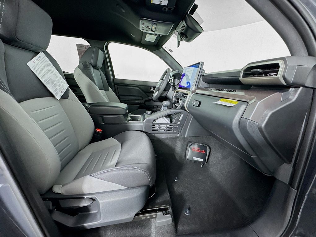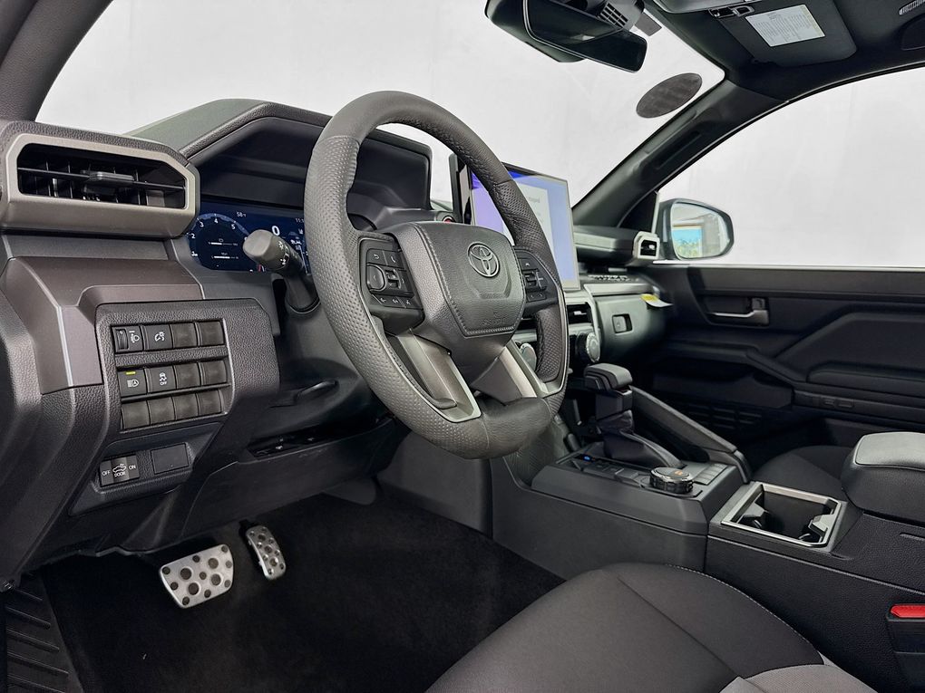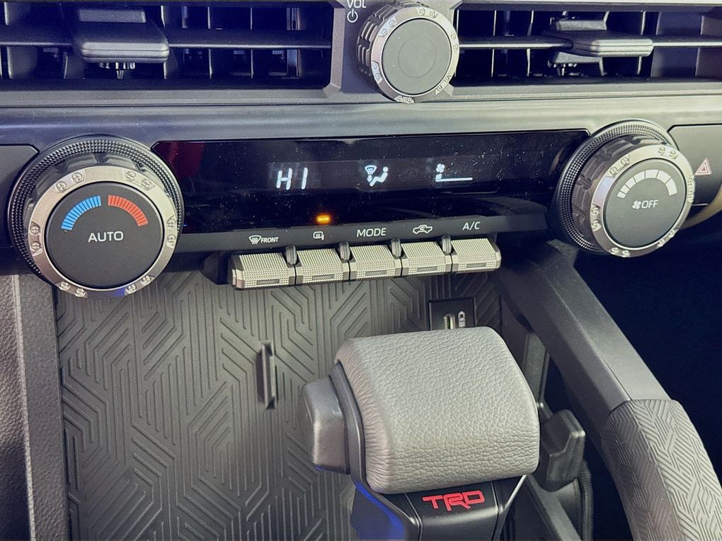3.583 Axle Ratio, 4-Wheel Disc Brakes, 6 Speakers, ABS brakes, Air Conditioning, Alloy wheels, AM/FM radio: SiriusXM, Anti-whiplash front head restraints, Apple CarPlay/Android Auto, Auto High-beam Headlights, Auto-dimming Rear-View mirror, Automatic temperature control, Brake assist, Bumpers: body-color, Driver door bin, Driver vanity mirror, Dual front impact airbags, Dual front side impact airbags, Electronic Stability Control, Emergency communication system: Safety Connect (up to 10-year trial subscription), Exterior Parking Camera Rear, Fabric Seat Trim, Four wheel independent suspension, Front anti-roll bar, Front Bucket Seats, Front Center Armrest, Front fog lights, Front reading lights, Fully automatic headlights, Heated door mirrors, Illuminated entry, Knee airbag, Leather Shift Knob, Leather steering wheel, Low tire pressure warning, Occupant sensing airbag, Outside temperature display, Overhead airbag, Overhead console, Panic alarm, Passenger door bin, Passenger vanity mirror, Power door mirrors, Power steering, Power windows, Radio: 8" Toyota Audio Multimedia, Rear step bumper, Rear window defroster, Remote keyless entry, Security system, Speed control, Speed-sensing steering, Split folding rear seat, Steering wheel mounted audio controls, Tachometer, Telescoping steering wheel, Tilt steering wheel, Traction control, Trip computer, Turn signal indicator mirrors, Variably intermittent wipers, and Wheels: 18" TRD Sport Alloy.