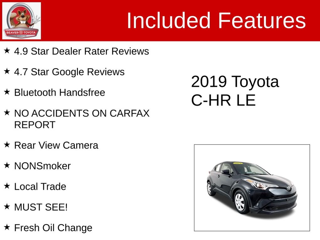 With its striking good looks, impressive performance, and comprehensive suite of features, this 2019 Toyota C-HR LE is a remarkable value proposition. We invite you to experience the exceptional quality and craftsmanship of this vehicle firsthand. Visit our showroom today and let us demonstrate how this C-HR can elevate your driving experience.