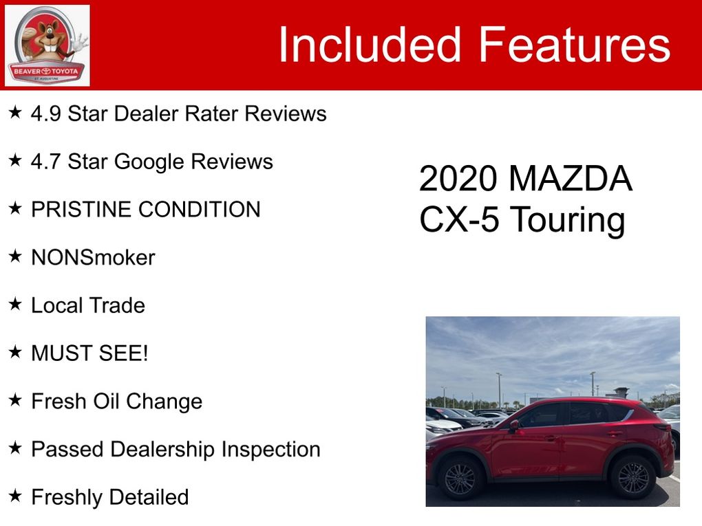 Indulge in the exceptional driving experience of this 2020 Mazda CX-5 Touring. Boasting a stunning Soul Red Crystal Metallic exterior, this SUV is a true head-turner. Equipped with a powerful SKYACTIV® 2.5L 4-Cylinder engine and a smooth 6-Speed Automatic transmission, this CX-5 delivers an impressive 25 city / 31 highway MPG, making it both efficient and thrilling to drive.
