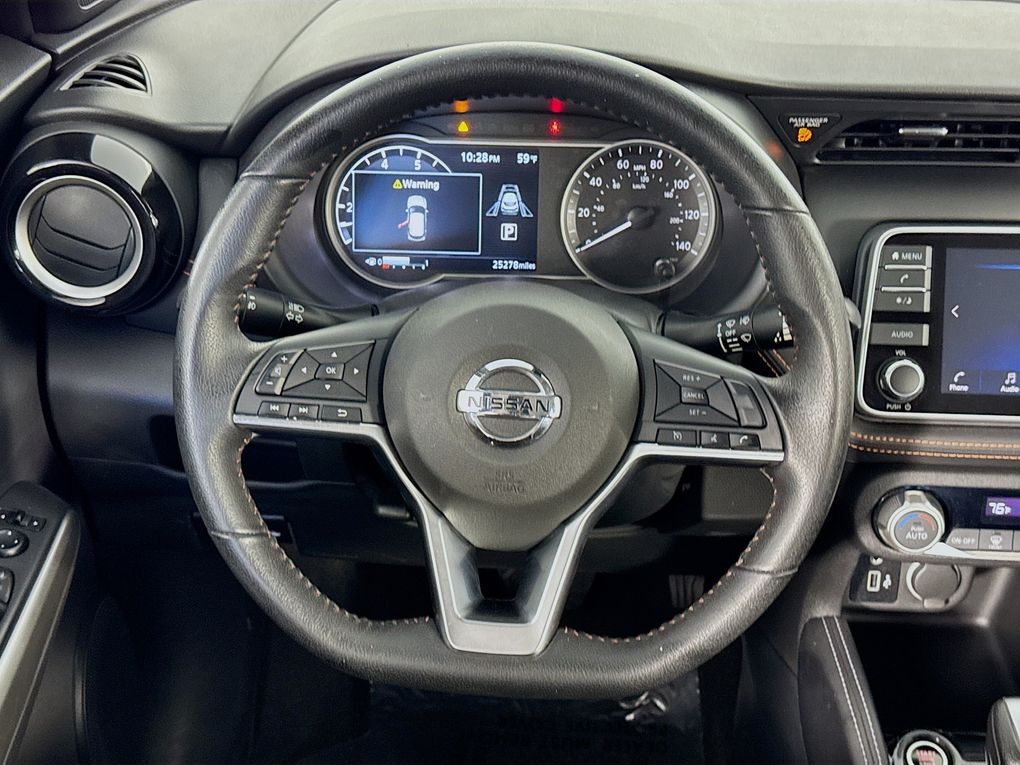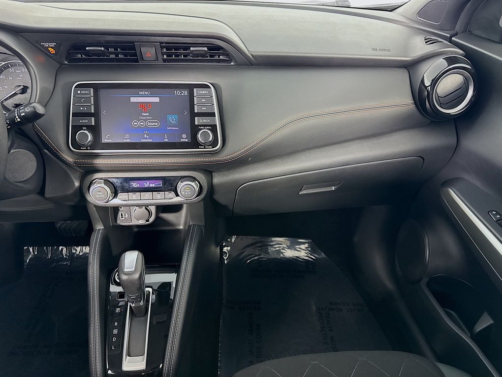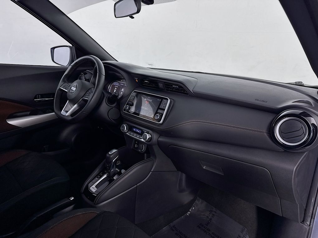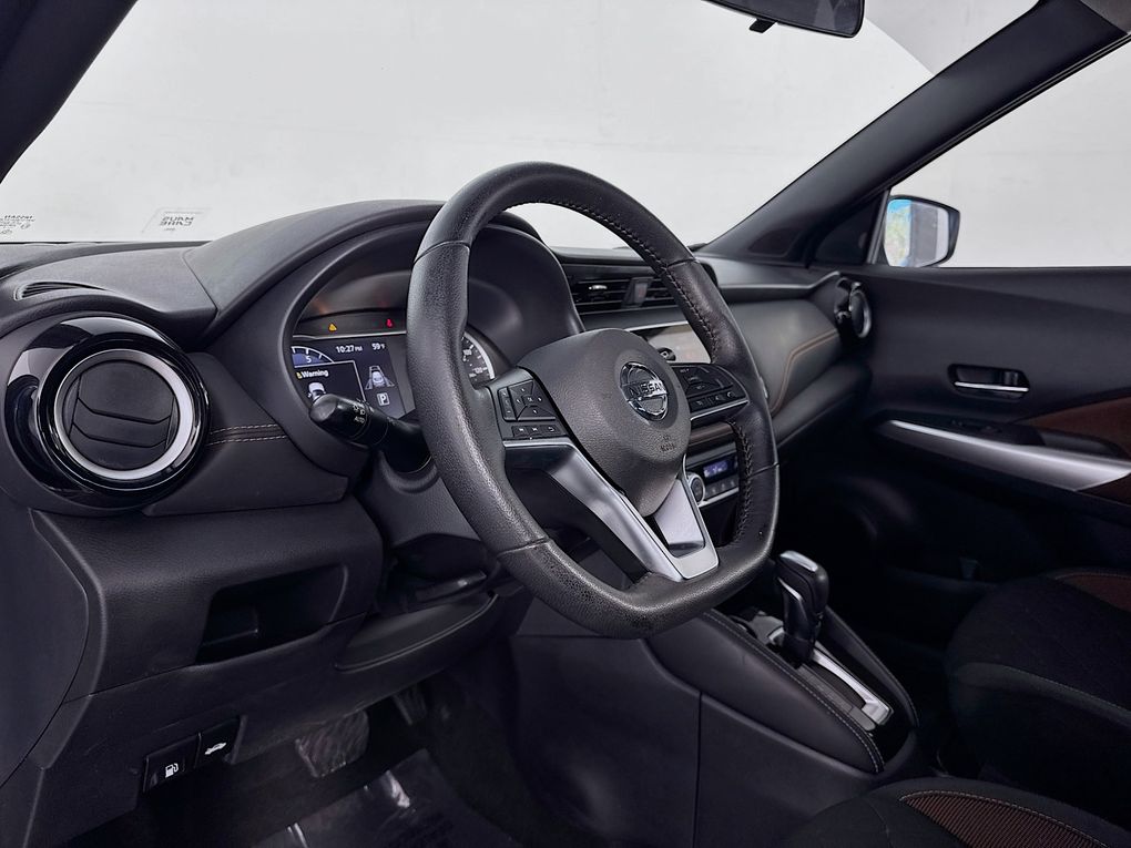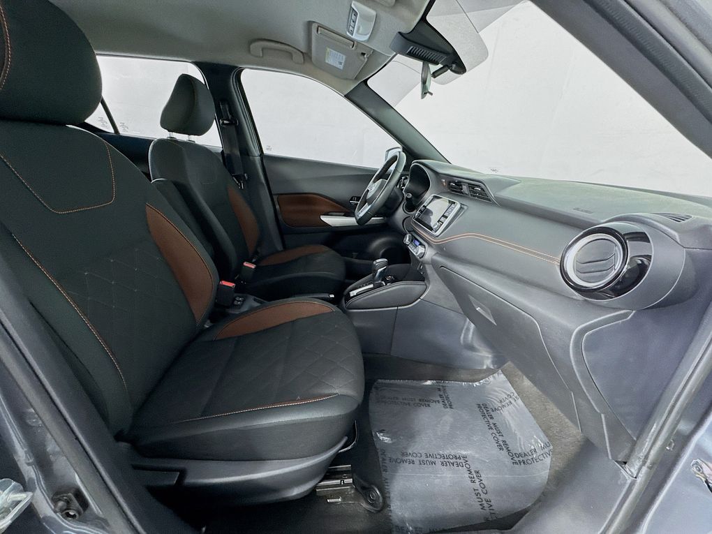 Step inside the Kicks SR and you'll be greeted by a well-appointed interior, featuring Cloth Seat Trim, a Sport Steering Wheel, and a NissanConnect system with Apple CarPlay and Android Auto integration. Stay connected and entertained on the go, while the Rear Parking Sensors and Blind Spot Warning system help keep you safe and aware of your surroundings.