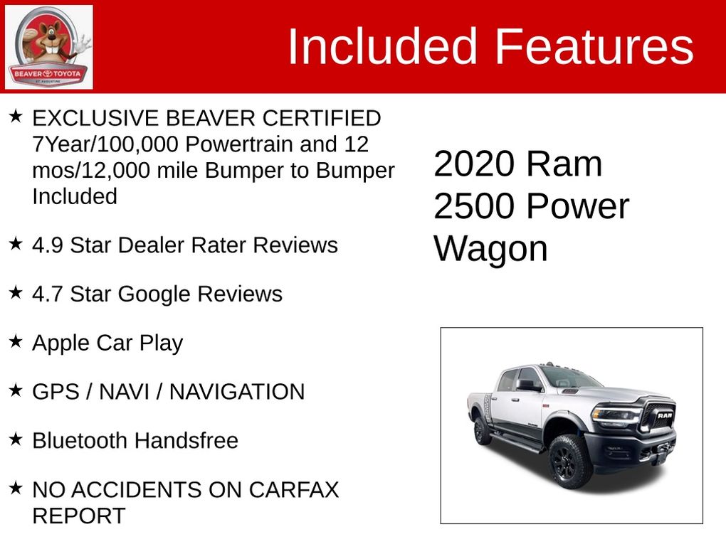 Discover the ultimate off-road companion in this 2020 Ram 2500 Power Wagon. Boasting a powerful 6.4L HEMI V8 engine and advanced 4WD capabilities, this rugged workhorse is ready to tackle any terrain with confidence and style.