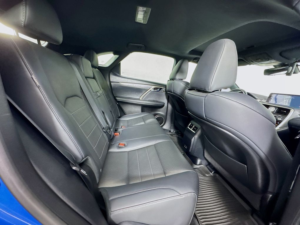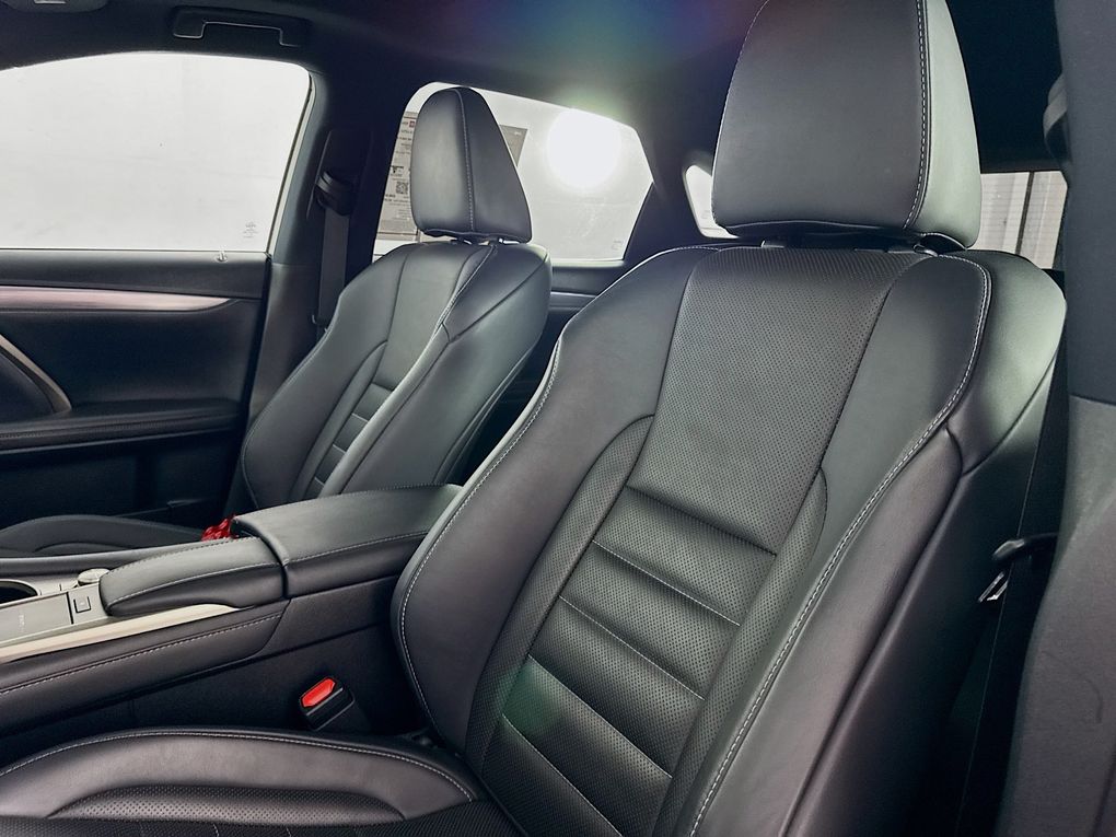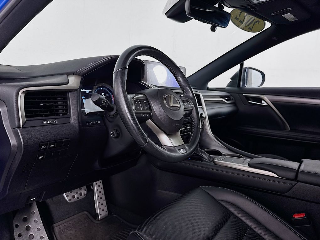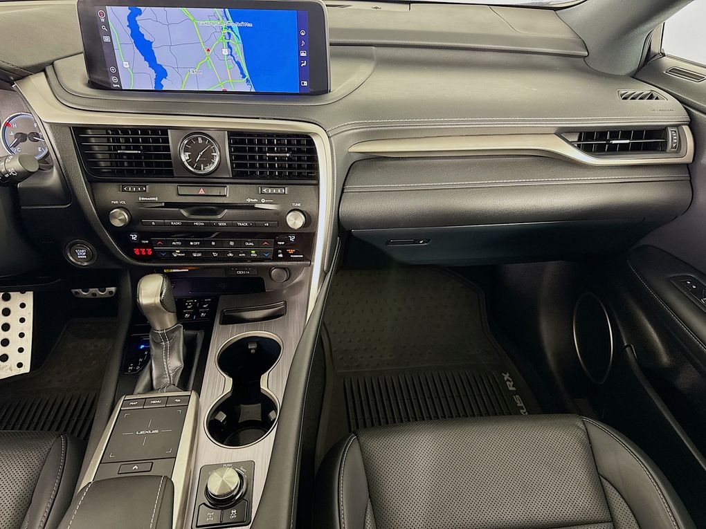 Elevate your commute with the RX 350 F Sport's exceptional amenities, including a 12.3" Navigation System, Heated and Ventilated Front Seats, Intuitive Parking Assist, Rear Cross-Traffic Braking, and a Touch-Free Power Rear Door with Kick Sensor.