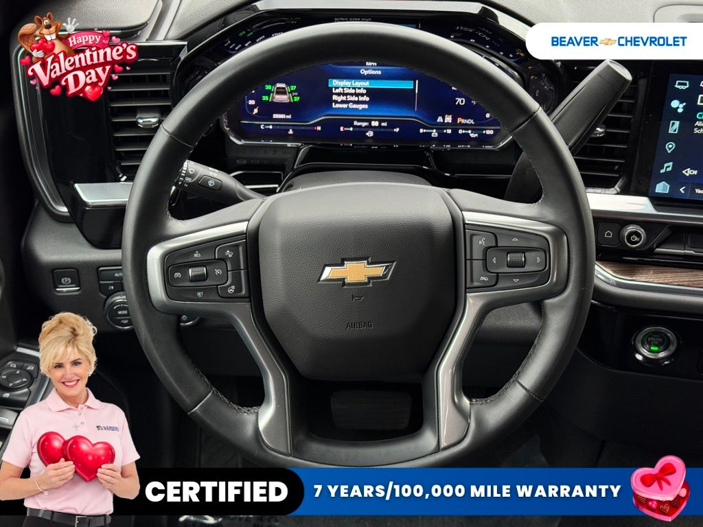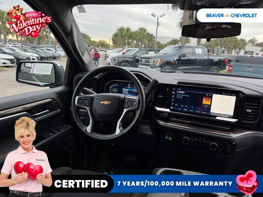 Inside, the Silverado LT LT1 is packed with premium features that elevate the driving experience. The cabin boasts dual-zone automatic climate control, a heated steering wheel, and heated front seats, ensuring your comfort in any weather. The Chevrolet Infotainment 3 Premium system with a 12.3-inch reconfigurable digital display keeps you connected and entertained on the go, with wireless Apple CarPlay and Android Auto integration.