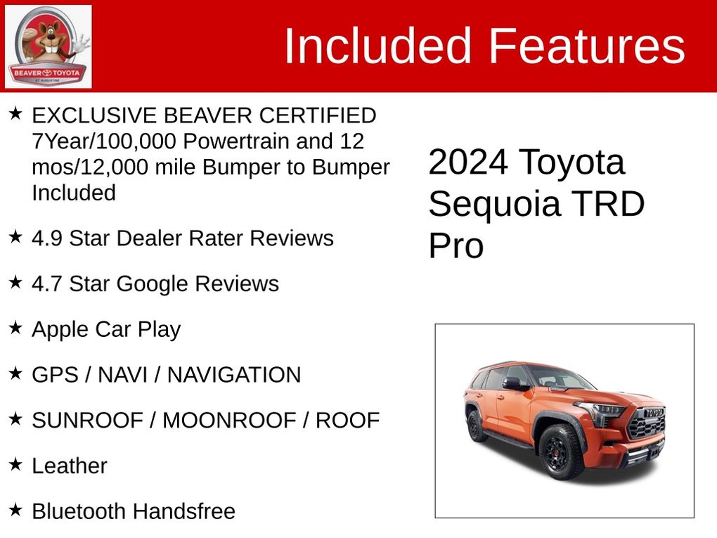 This is the Sequoia TRD Pro you've been searching for. Fully serviced, inspected, and detailed to the highest standards, this SUV is ready to elevate your driving experience. Don't miss your chance to make this exceptional vehicle your own. Schedule a test drive today and discover the exceptional quality and capabilities of the 2024 Toyota Sequoia TRD Pro.