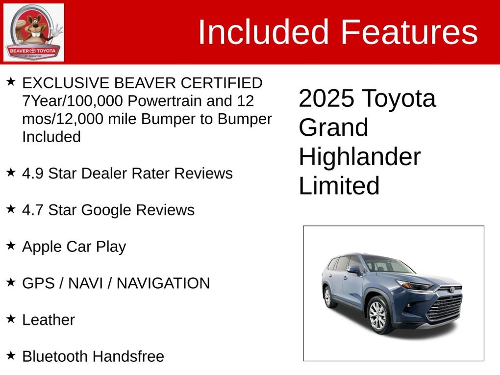 Elevate your confidence with the Beaver Certified peace of mind. This Grand Highlander Limited has undergone a rigorous multi-point inspection, ensuring it meets our highest standards of quality and reliability. With a 7-year/100,000-mile powertrain warranty and a 12-month/12,000-mile bumper-to-bumper warranty, you can drive with the assurance that your investment is protected.