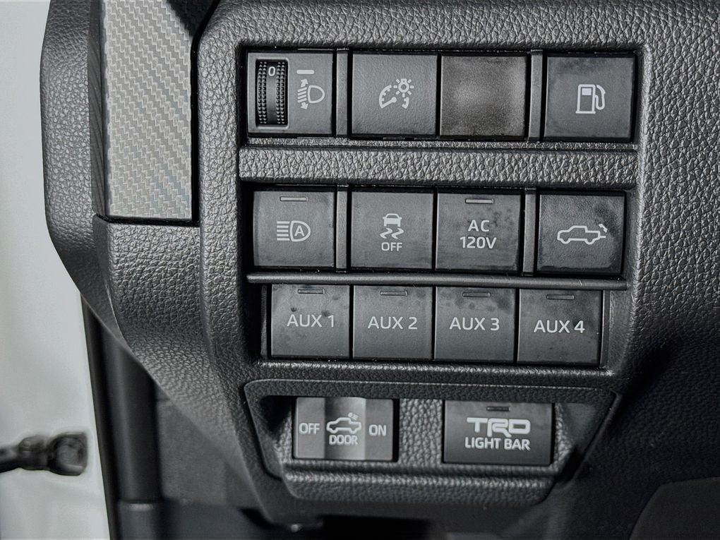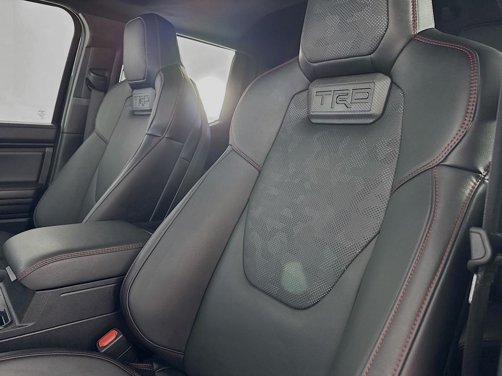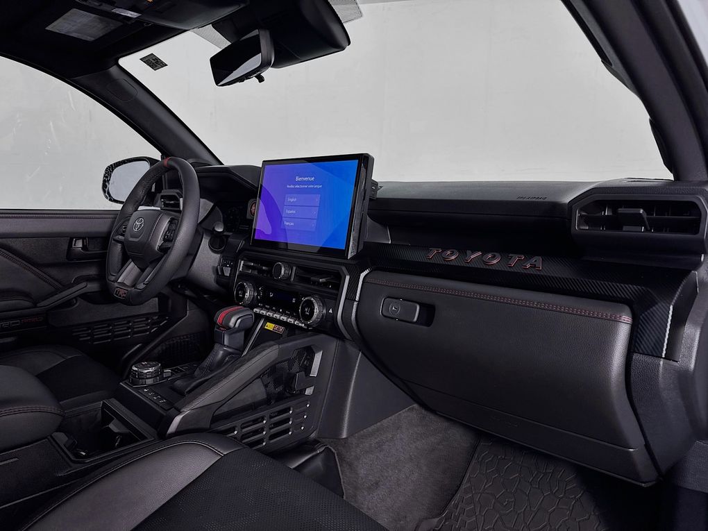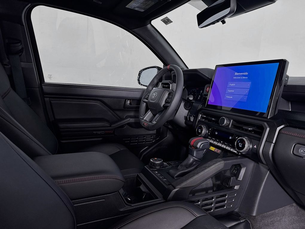 Climb inside and you'll be greeted by a wealth of premium features that elevate the driving experience. Indulge in the comfort of heated and ventilated leather-trimmed seats, while the Heads-Up Display and intuitive 14" Toyota Audio Multimedia system keep you connected and informed. The TRD Pro package adds a host of off-road-ready enhancements, including the rugged 18" Black alloy wheels, Bilstein shocks, and a locking rear differential, making this Tacoma the ultimate adventure companion.
