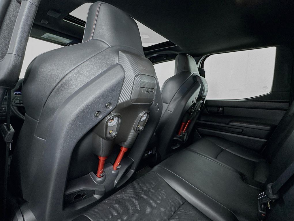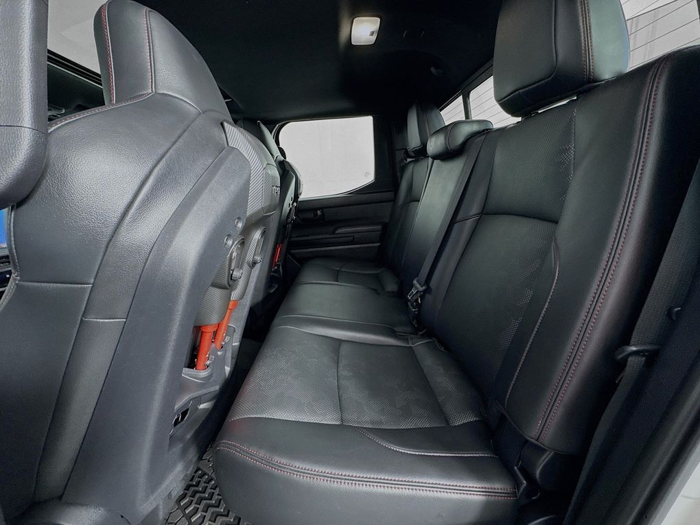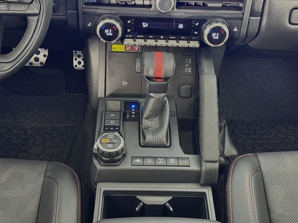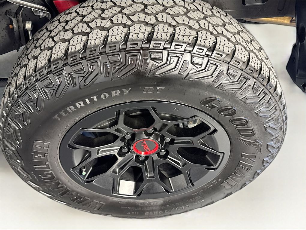 Climb inside and you'll be greeted by a wealth of premium features that elevate the driving experience. Indulge in the comfort of heated and ventilated leather-trimmed seats, while the Heads-Up Display and intuitive 14" Toyota Audio Multimedia system keep you connected and informed. The TRD Pro package adds a host of off-road-ready enhancements, including the rugged 18" Black alloy wheels, Bilstein shocks, and a locking rear differential, making this Tacoma the ultimate adventure companion.