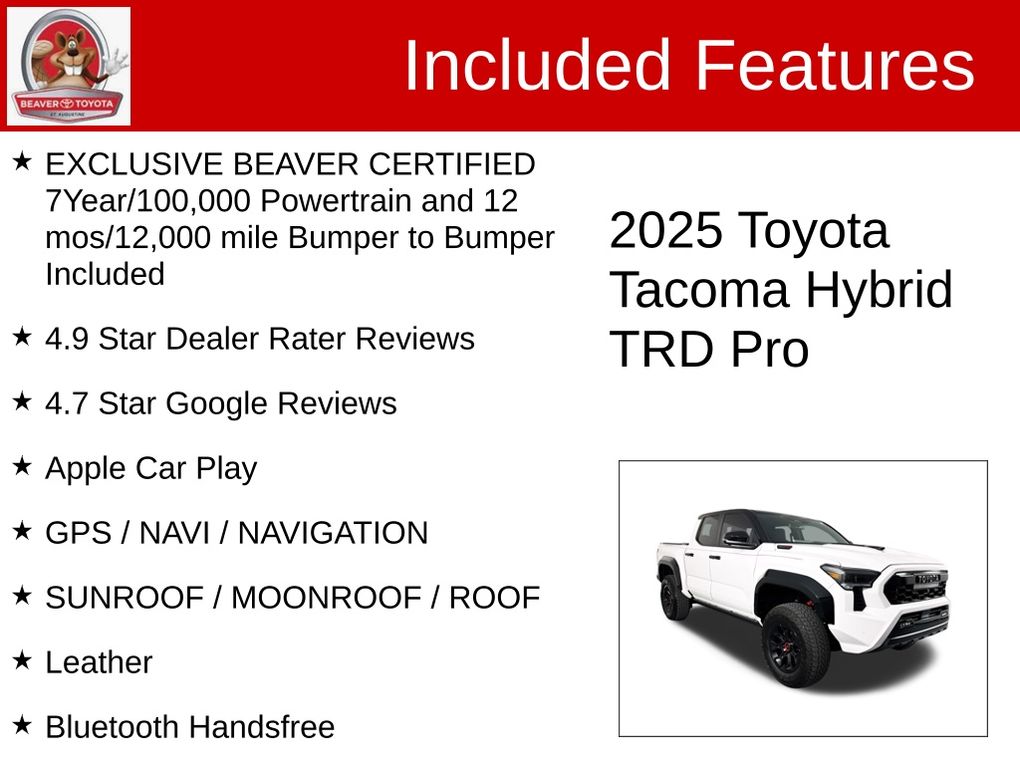 Discover the perfect blend of capability, technology, and style with this 2025 Toyota Tacoma Hybrid TRD Pro. Schedule a test drive today and experience the unparalleled performance and refinement that this exceptional vehicle has to offer.