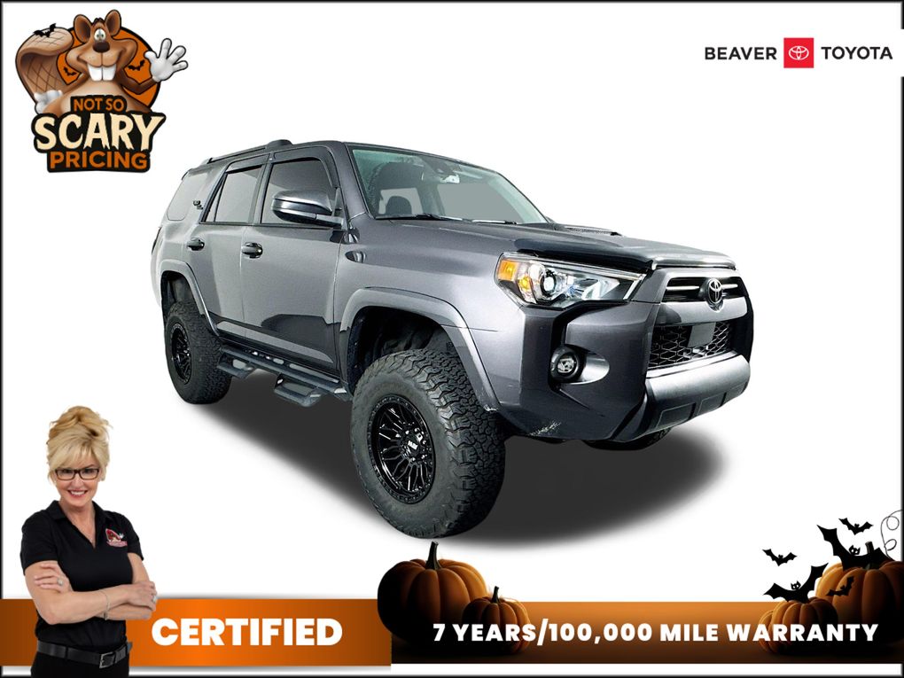 CARFAX One-Owner. Clean CARFAX. Certified. EXCLUSIVE BEAVER CERTIFIED 7Year/100,000 Powertrain and 12 mos/12,000 mile Bumper to Bumper Included, 4.9 Star Dealer Rater Reviews, 4.7 Star Google Reviews, Apple Car Play, Bluetooth Handsfree, NO ACCIDENTS ON CARFAX REPORT, BEAVER CERTIFIED*7 YEAR/100K MILE WARRANTY*$0 DEDUCTIBLE*BUY WITH PEACE OF MIND, Rear View Camera, One Owner, NONSmoker, Towing Package, MUST SEE!, Fresh Oil Change, Passed Beaver Certified Multi Point Inspection, Passed Dealership Inspection, Freshly Detailed, EXCELLENT CONDITION, Back Up Camera, Alloy Wheels, LCD Display Screen, Fully Serviced and Detailed, LOOKING TO BUY THE BEST CERTIFIED USED CARS IN THE MARKET ,THIS 4 RUNNER QUALIFIES FOR EVERYTHING YOU ARE LOOKING FOR!! WOW THE ROAD TO BUYING THE USED CAR OF YOUR DREAMS IS THE ROAD TO BEAVER TOYOTA IN ST AUGUSTINE ,THE DEALERSHIP THAT CARES AND WANTS THE BEST FOR YOU!!.Magnetic Gray Metallic 2023 Toyota 4Runner TRD Off-Road 4WD 4.0L V6 DOHC 24VWe provide you with world class service using the most advanced technology to service your car, by our friendly and compassionate team of sales specialists! Our Sales team consists of individuals handpicked to deliver a sales experience like no other. We want your experience to be unique and cater to your individuality. Our Sales team is committed to providing this experience! We want you to know we’re listening, so please, feel free to always let us know how we can better serve you, or merely to express how unique your experience was here at Beaver Toyota!!Certification Program Details: EXCLUSIVE BEAVER CERTIFIED WARRANTY includes 7 Year/100,000 Miles Powertrain Coverage 12 Months/12,000 Bumper to Bumper CoverageTHIS VEHICLE IS BEAVER CERTIFIED: • 7 year/ 100,000 mile powertrain warranty o Protection covers engine, transmission and front/rear wheel drive • 12 month/ 12,000 mile limited warranty o Comprehensive protection on additional components • 24 hour roadside assistance o Towing, lock out and fuel services • Nationwide coverage o Effective anywhere in the US • Special Financing rates o Attractive finance options for certified vehicles THIS VEHICLE HAS BEEN PROFESSIONALLY HAND PICKED, SERVICED AND DETAILED TO INCLUDE *$2000 IN RECENT VEHICLE INVESTMENTS: • Multi Point Inspection o Visually inspect all safety components o Check fluids, belts, brakes, tires, batteries etc o Certified technician road test • Oil and Filter Service o Replace oil and filters o Replace cabin filter o Replace air filter • Interior and Exterior Detailing o Thoroughly Vacuum o Thoroughly Clean Interior Surfaces and Panels o Treat with Conditioners o Interior Control Cleaning o Hand Wash and Wax o Clean Door Jambs and Hinges o Clean Rims, Tires and Windows o Clean Engine Compartment Disclaimer: *$2000 based on average reconditioning costs. WHY BEAVER TOYOTA ST AUGUSTINE? GUEST EXPERIENCE: At Beaver Toyota St Augustine, we’re here to WOW YA and our staff is 100% dedicated to customer satisfaction. We understand that you want a fast, fair and transparent experience throughout the car buying process and every member of our team is equipped to help. WE GIVE BACK: We believe in paying it forward and taking care of our community. With that in mind, every purchase helps support local schools, nonprofit organizations and businesses through our Acts of Wow. FINANCING OPTIONS: Take advantage of our attractive low-rate financing options. We have access to credit unions and national banks to provide financing for most credit levels. We can tailor a finance package to fit your needs. To get started, complete our secure online credit application.