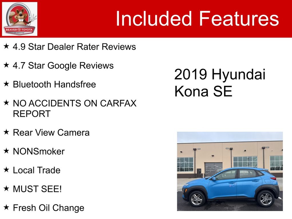 This Kona has been meticulously serviced, with a fresh oil change and a thorough inspection, and it's ready to provide you with many miles of reliable and enjoyable driving. With no accidents reported on the CARFAX report, you can trust that this vehicle has been well-maintained and cared for.