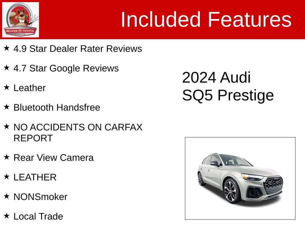 This exceptional Audi SQ5 Prestige quattro is a must-see for any discerning buyer seeking a blend of performance, luxury, and cutting-edge technology. Don't miss the opportunity to experience the thrill of driving this remarkable vehicle. Schedule a test drive today and discover the true meaning of driving pleasure.